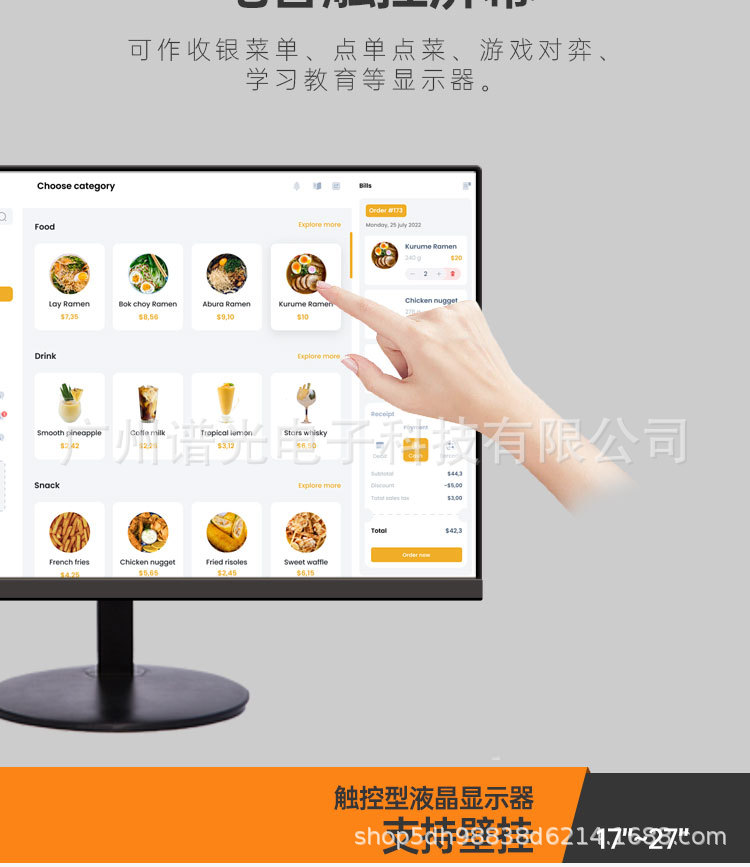 17 19 22 24 27 дюймов Индустриальный сенсорный дисплей Кассовый компьютер Дисплей для новичков Емкостный экран