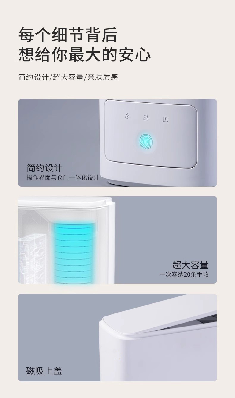 小巧机身 大容量(一次可容纳20张压缩纸巾)