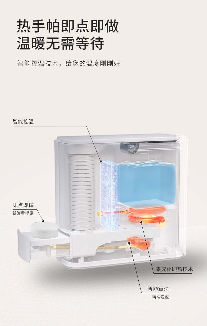 首个温湿巾出巾时间10秒,后续出巾 1-2秒/个