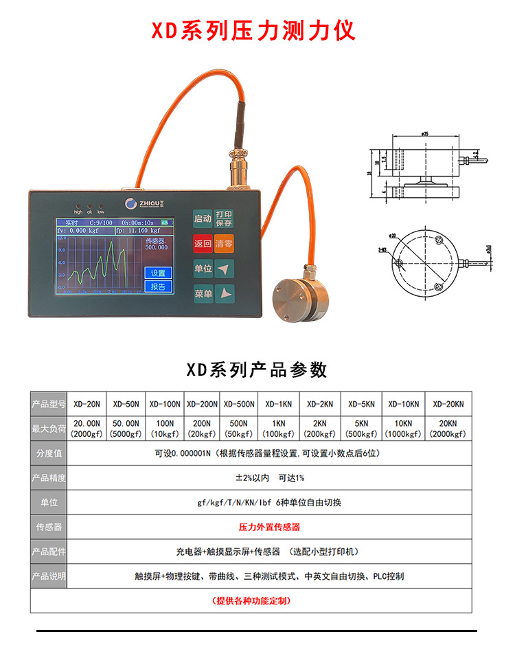 Интеллектуальный сенсорный экран внешний цифровой дисплей высокоточный измеритель силы сжатия-растяжения динамометр манометр 0-100Т100КН