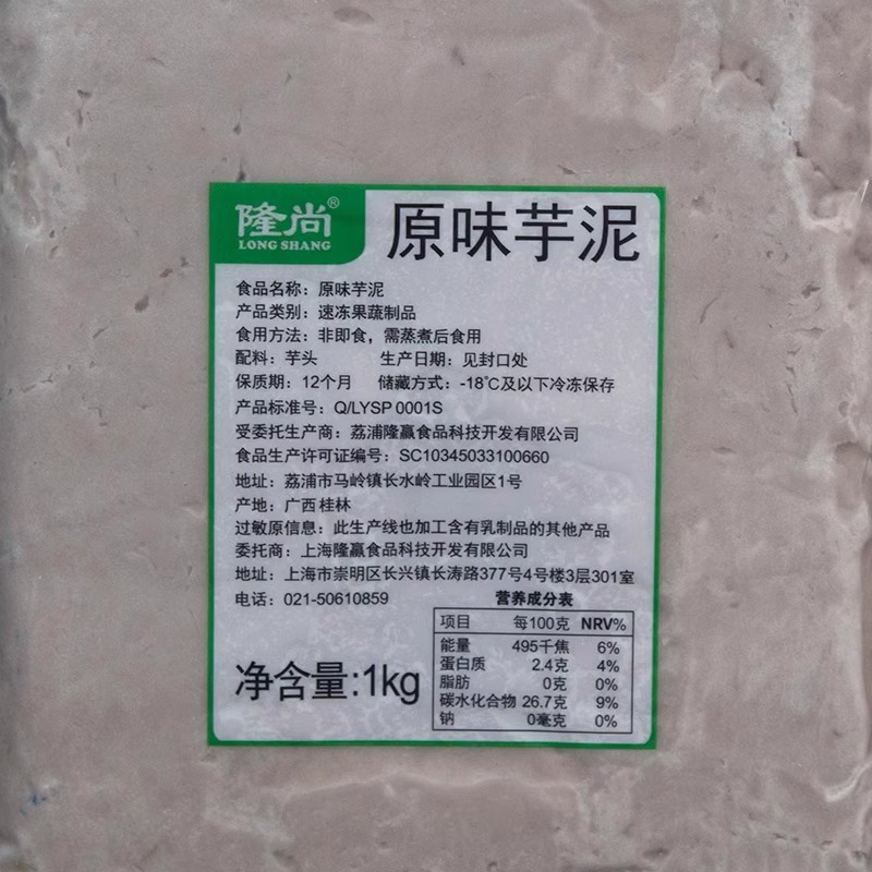 Longshang чистое замороженное таро пюре 1.0кг упакованное таро пюре молочный чай оригинальное чистое фиолетовое картофельное пюре таро пюре для выпечки молочного чая