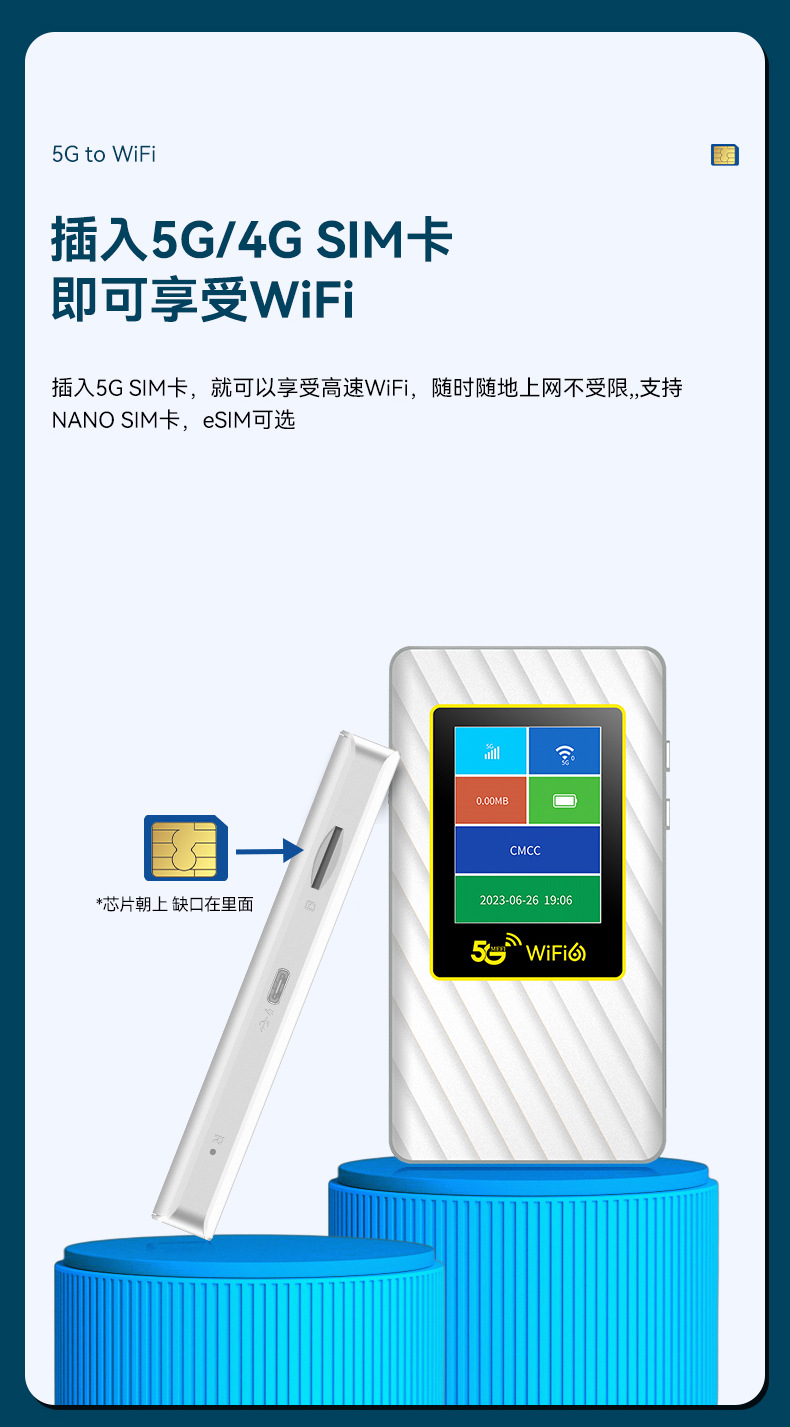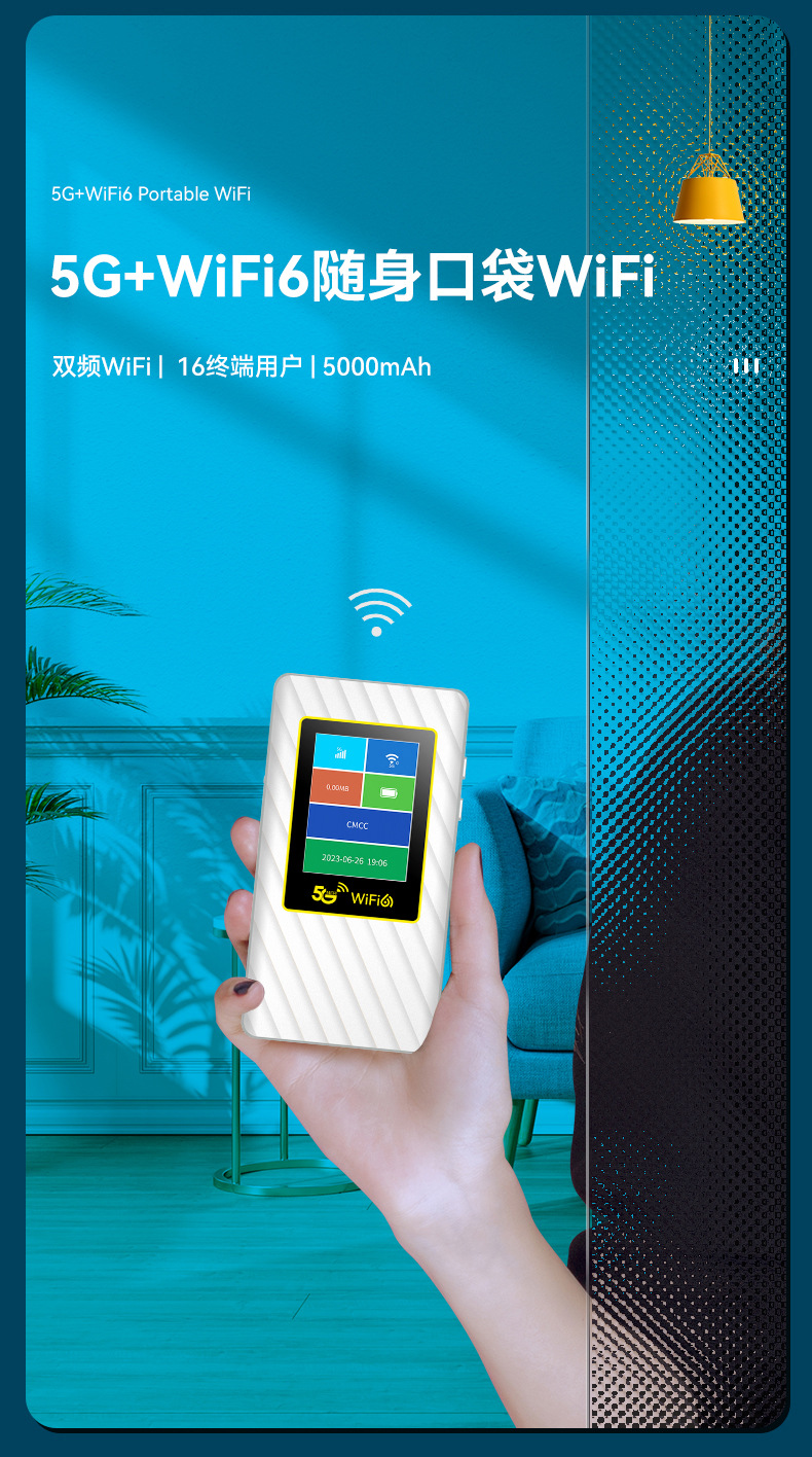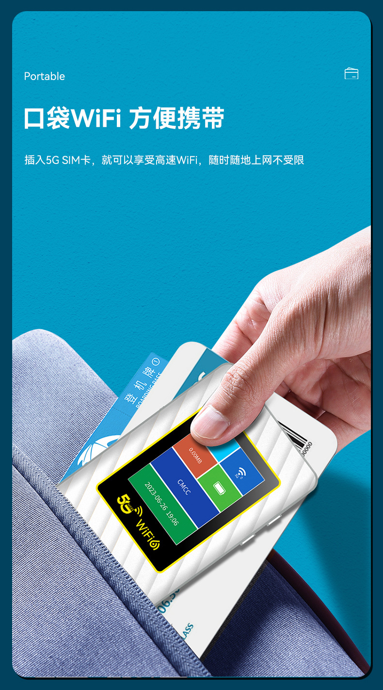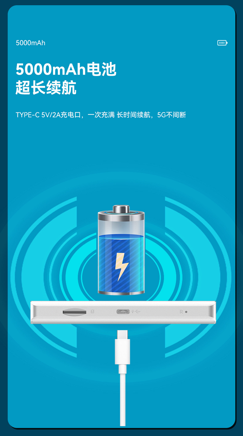 Подключаемая карта портативного Wifi с встроенной батареей 5000 мАч, интерфейс Type-C, ЖК-дисплей, 5g маршрутизатор