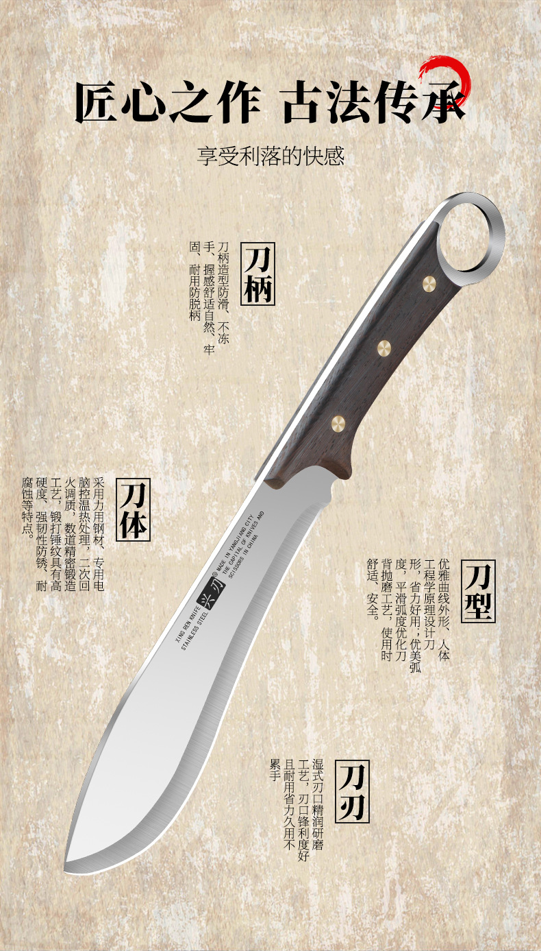 Специальный нож для рубки древесины с легкой очисткой, нержавеющая сталь, ручка из массива дерева
