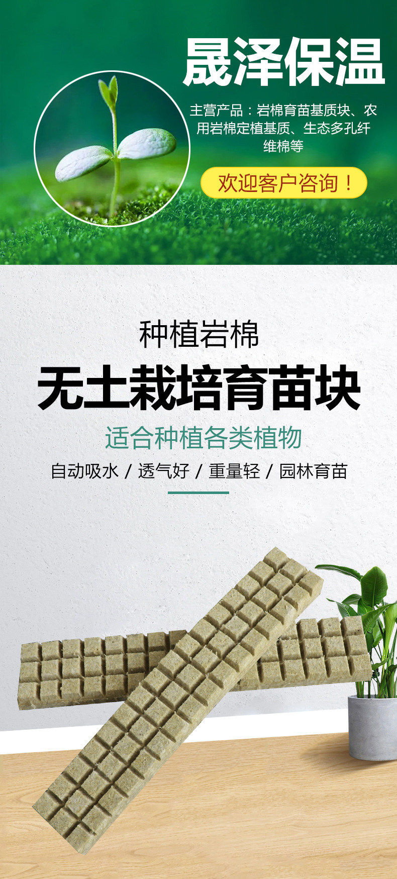 Индивидуальные блоки из каменной ваты для безземельного выращивания, квадратные блоки для рассады, овощей и фруктов
