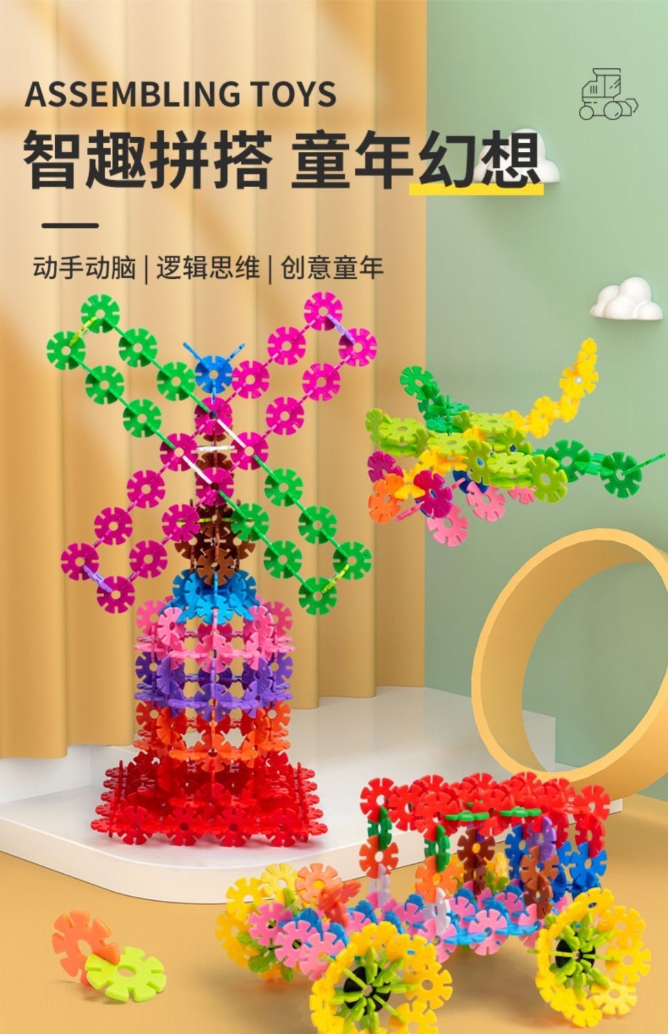 Снежинка 5 сантиметров в диаметре супер большая утолщенная деталь пазла для сборки игрушка для детского сада раннего образования пластиковые строительные блоки