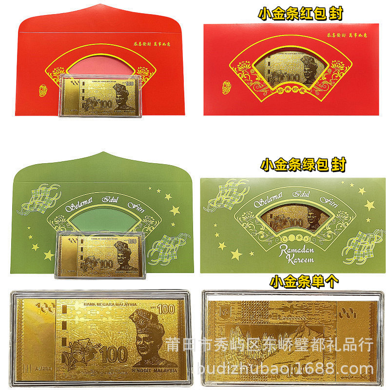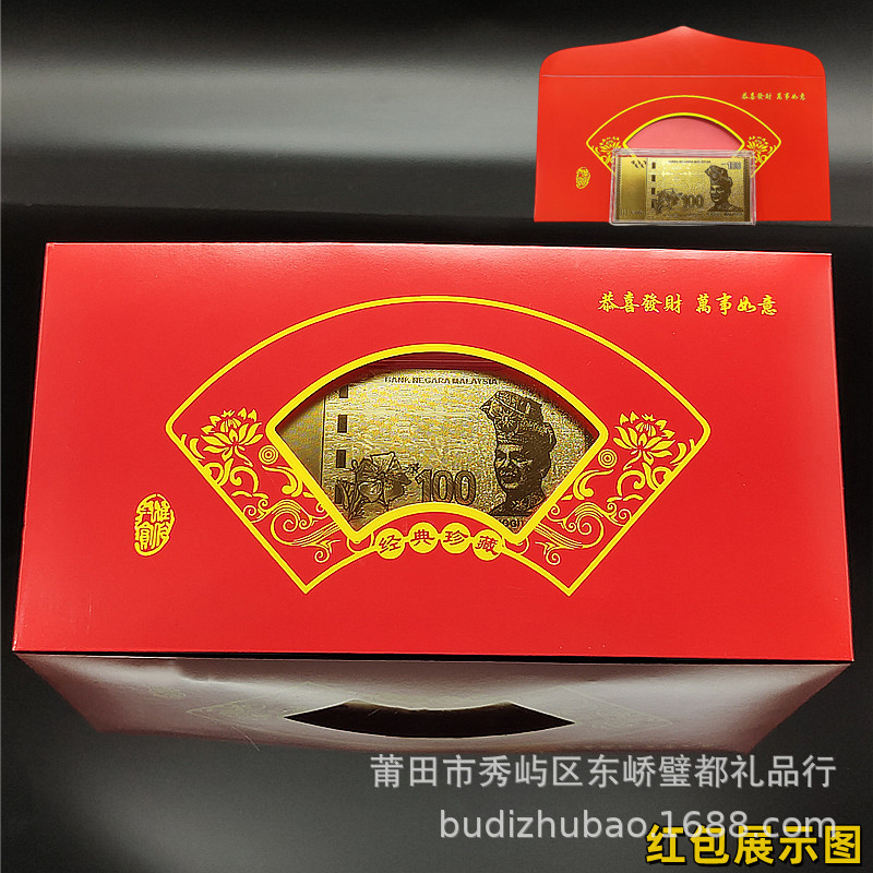 Новая имитированная золотая фольгированная малайзийская двусторонняя банкнота, памятная коллекция, красный и зеленый конверты