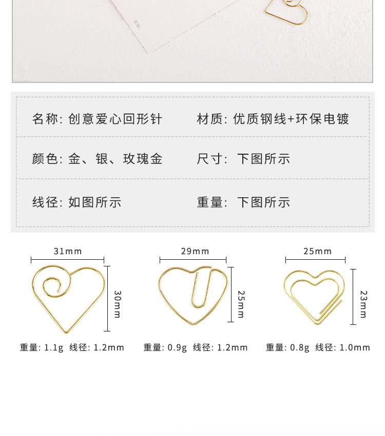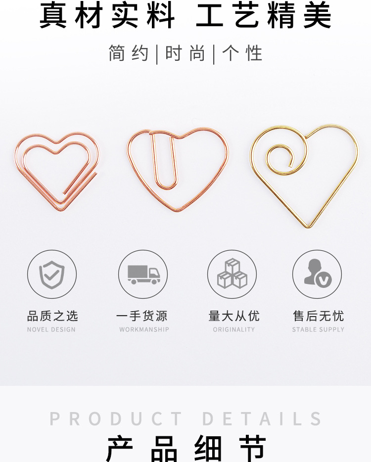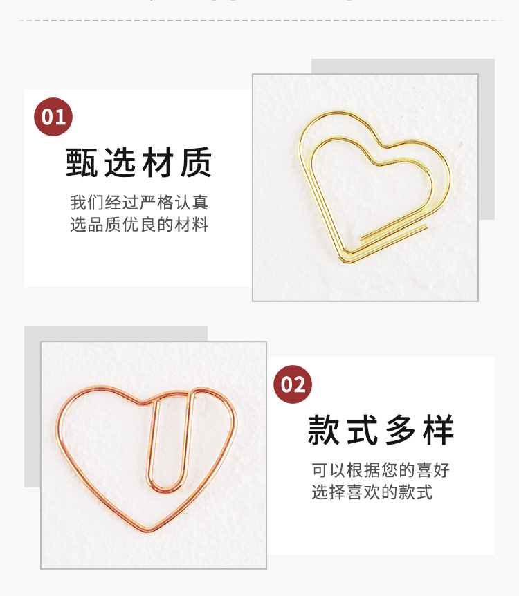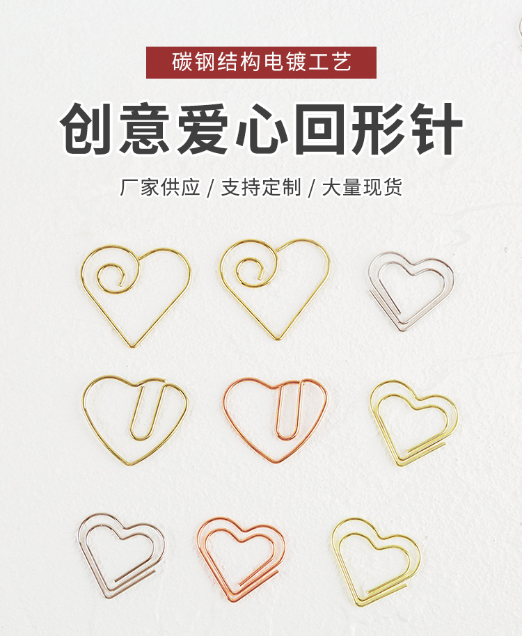 Оптовая продажа скрепок в форме сердца, металлические, для офисной канцелярии
