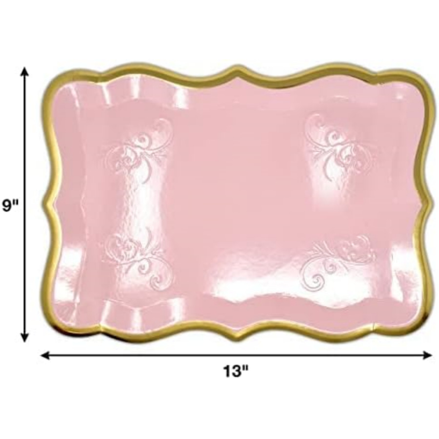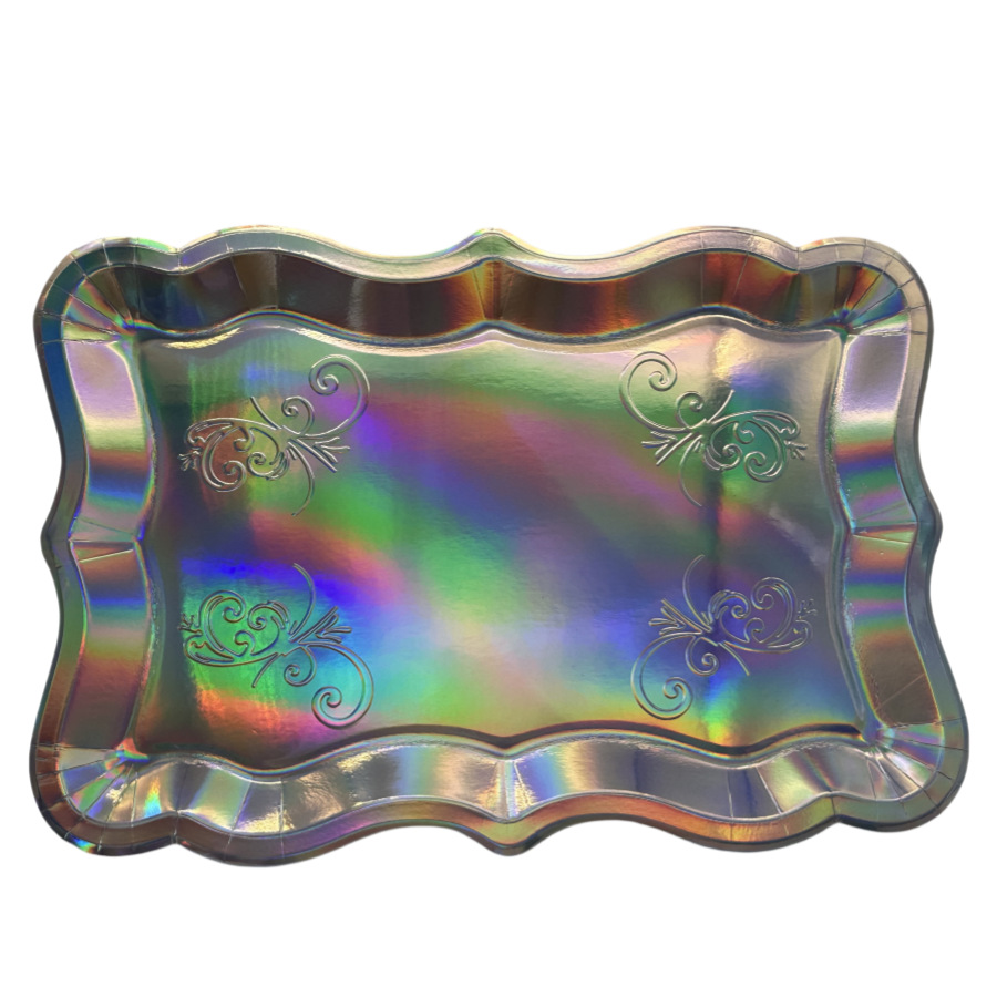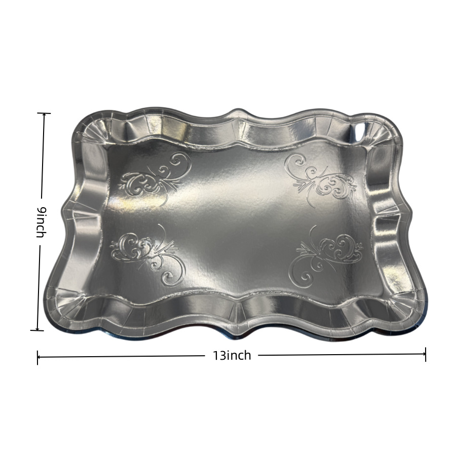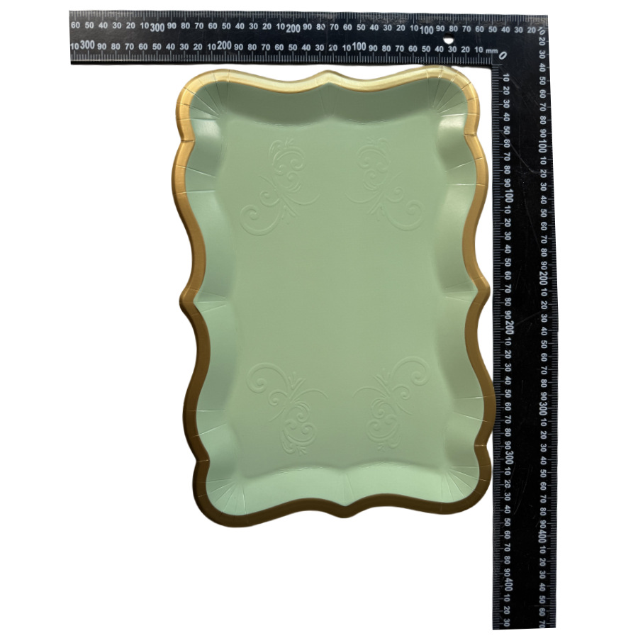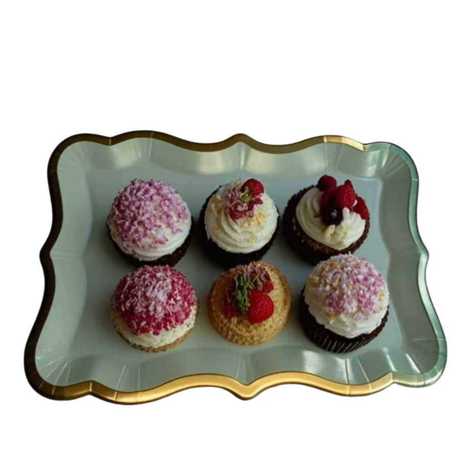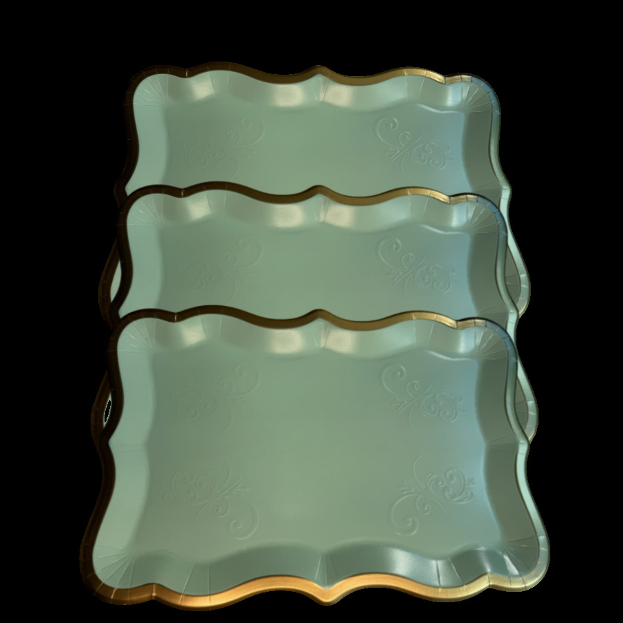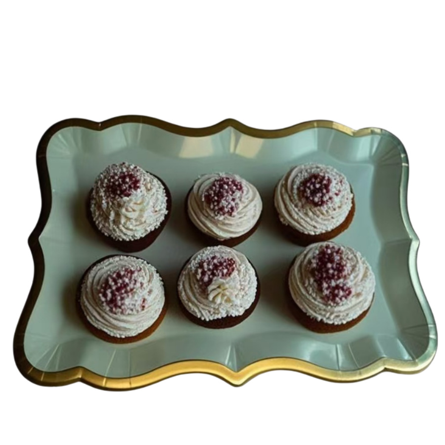 Прямоугольный поднос с белой золотой каймой для десертов, одноразовый бумажный поднос для вечеринки