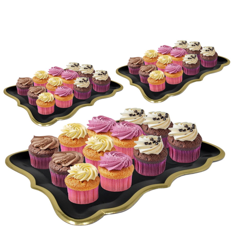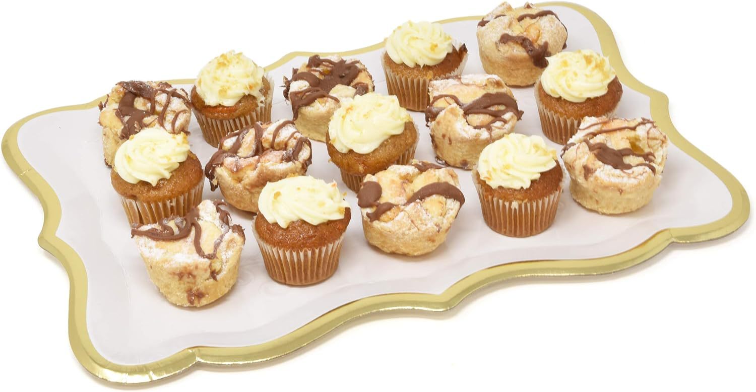 白色金边框矩形托盘带金色边框用于甜点展示桌派对一次性纸盘