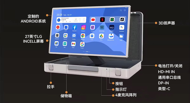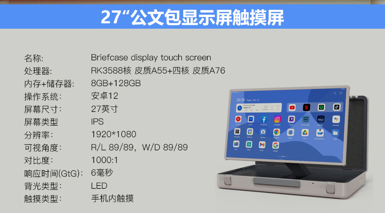 Кросс-бордерный новый 27-дюймовый портативный сенсорный дисплей чемодан LED планшет ПК все-в-одном