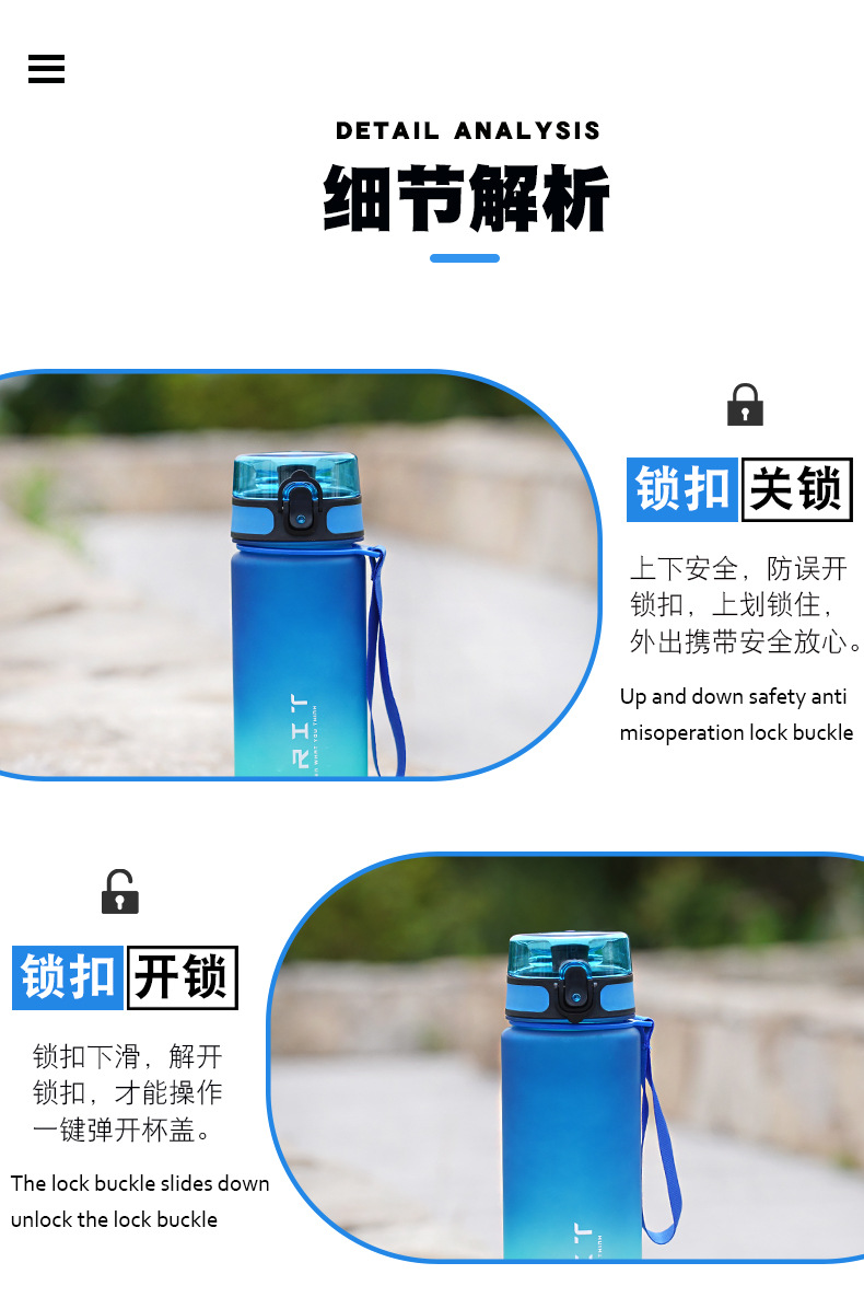 1 л градиентный цвет бутылка для воды большого объема пластиковая бутылка с защитой от протечек