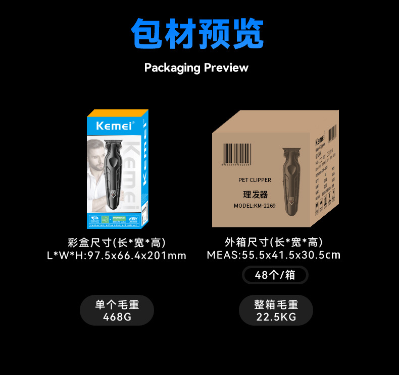 Электрическая машинка для стрижки волос Kemei для салона, бесшумная
