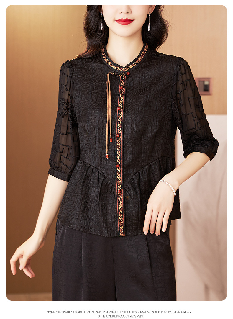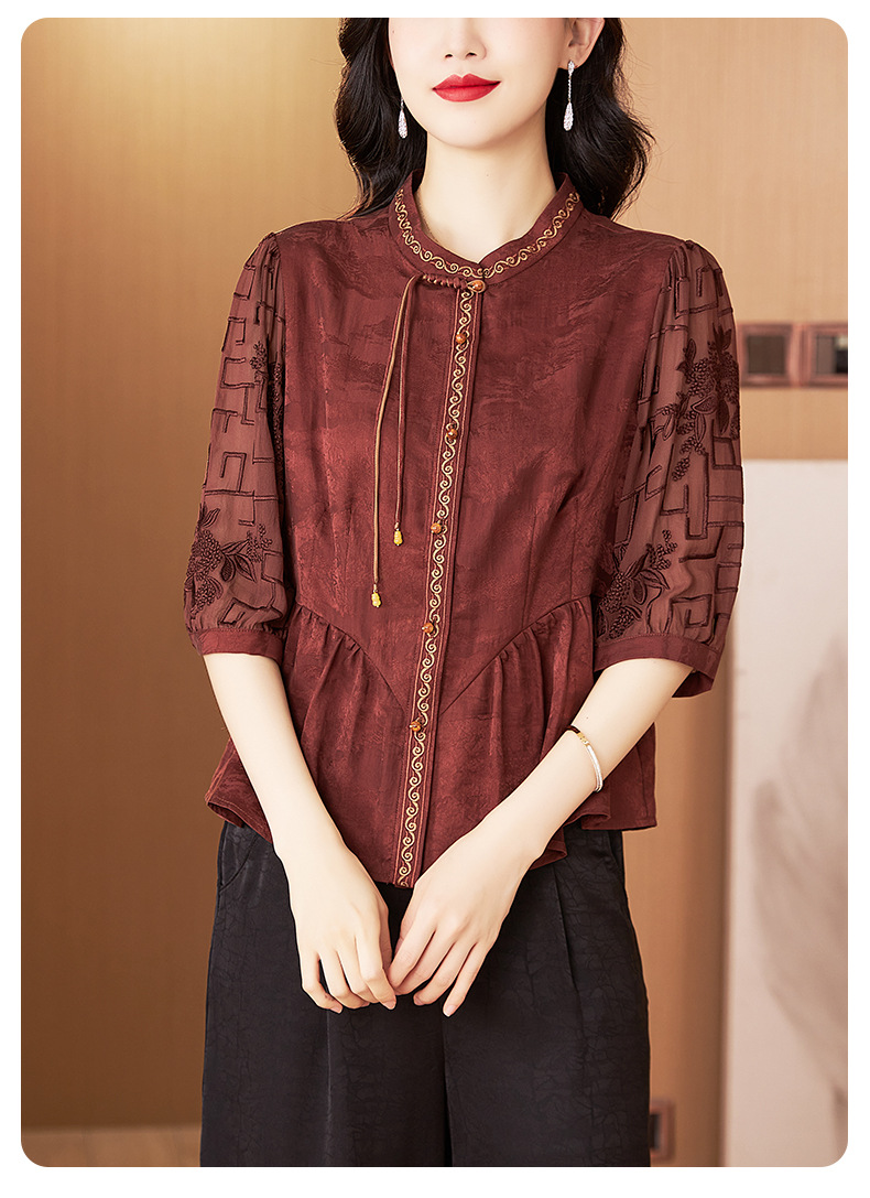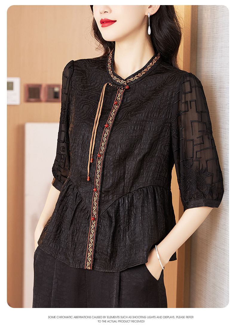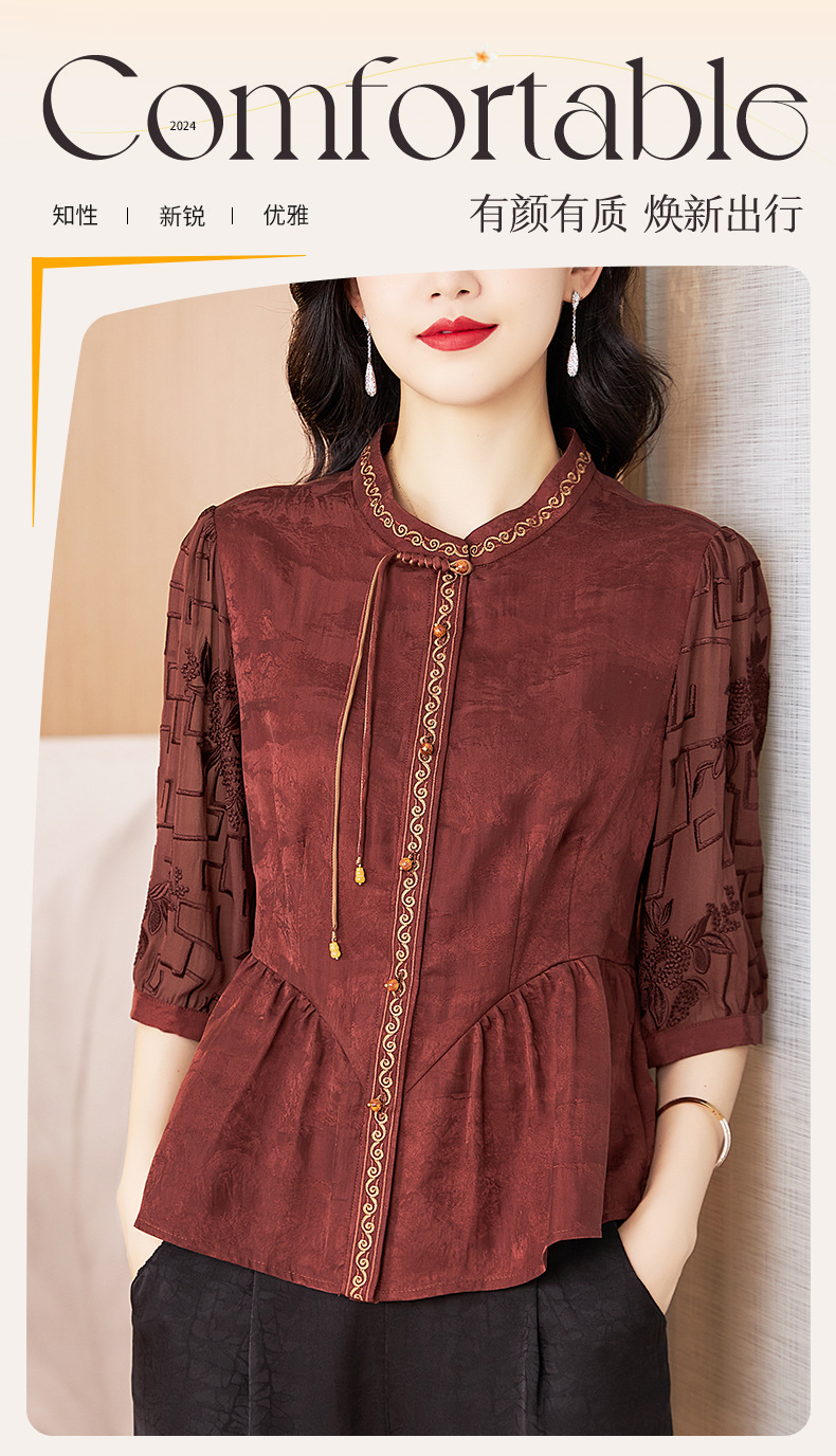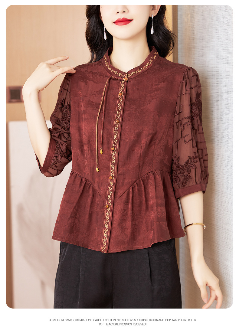Шелковая блузка с вышивкой, новая весна-лето 2024
