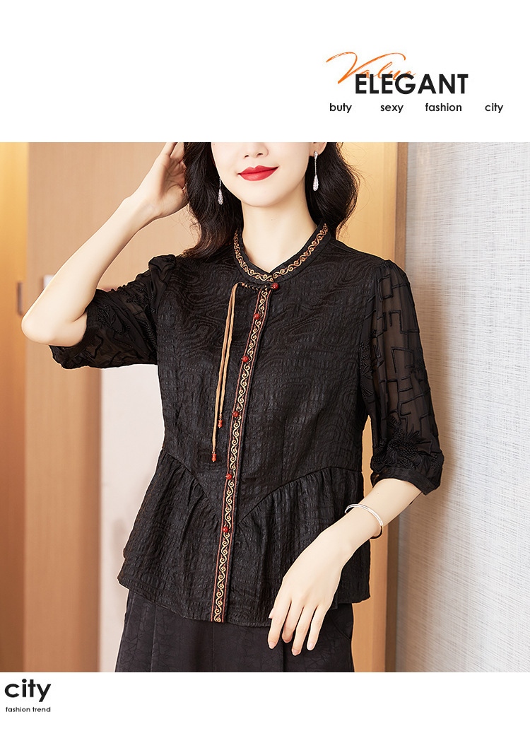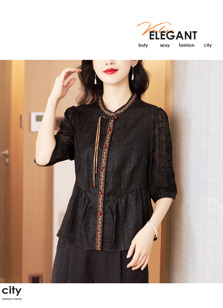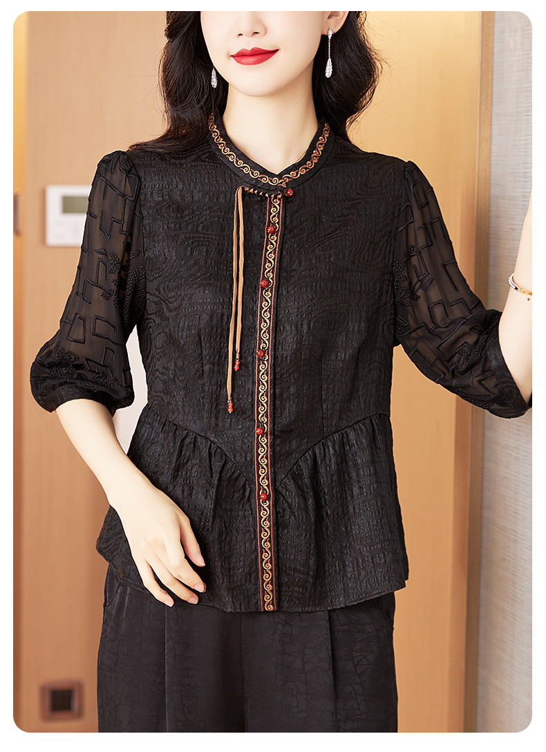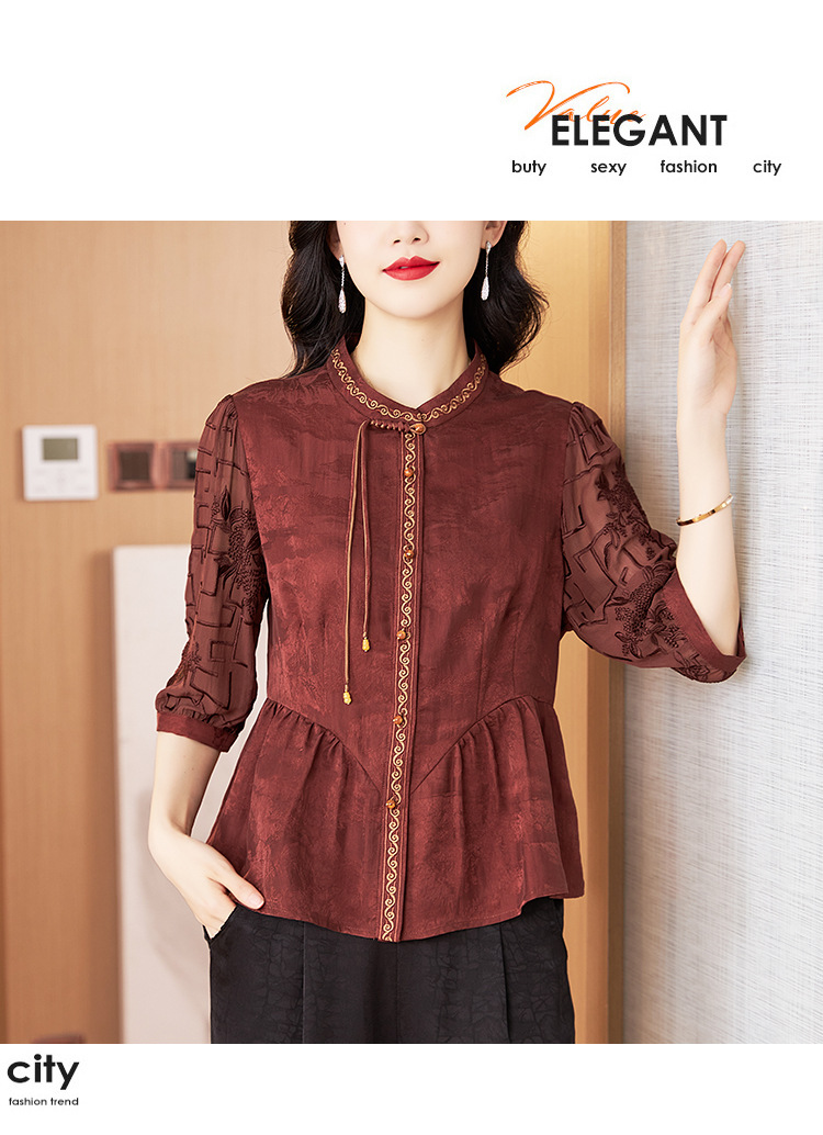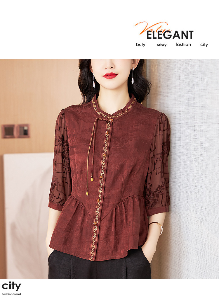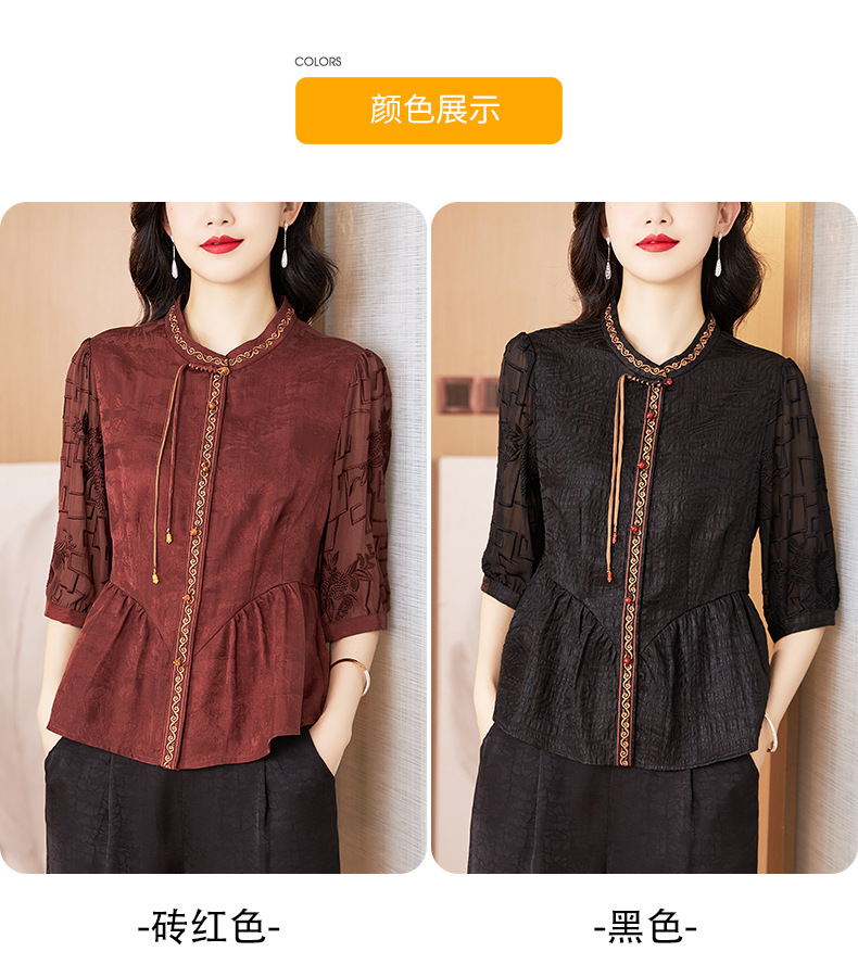 Шелковая блузка с вышивкой, новая весна-лето 2024