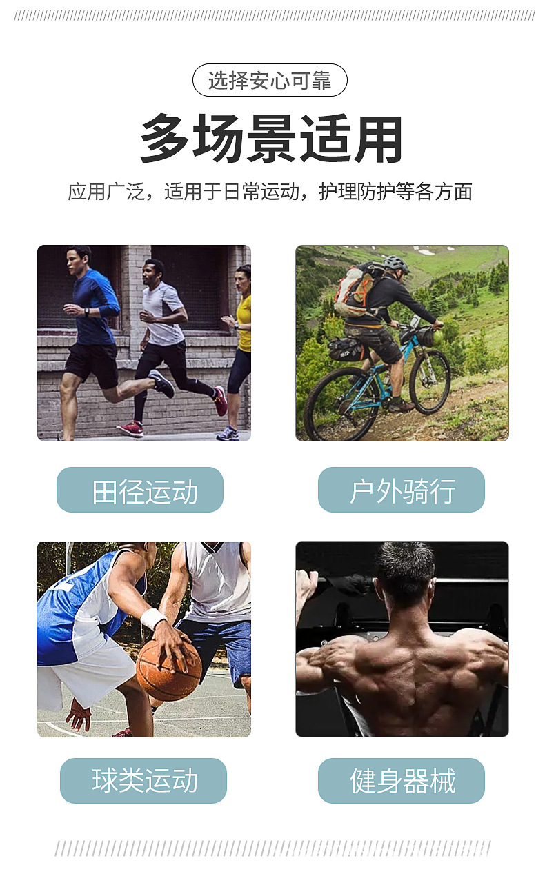 Применимые сценарии Running sports, Fitness equipment, Health massage, Fitness body, Sports trend, Cycling, Extreme challenge, Hiking and camping, Sports protective gear accessories