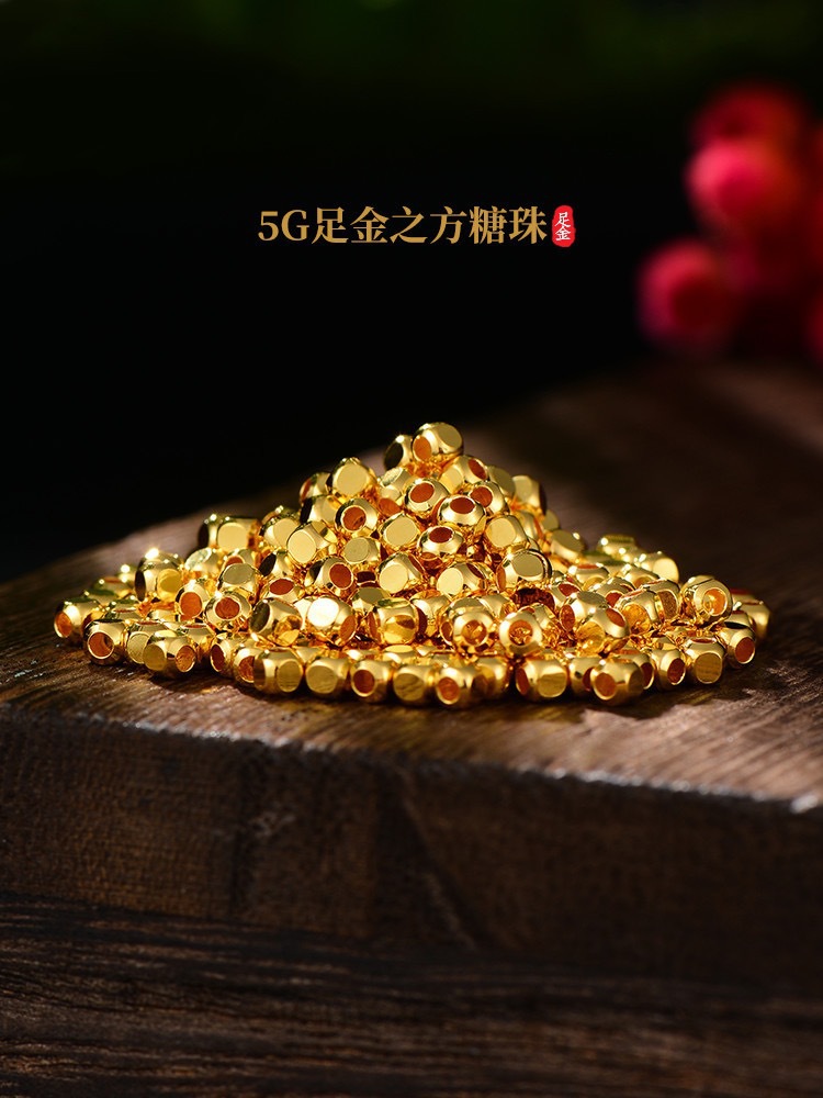 чистое золото 999 золотые сахарные кубики браслет 5г чистое золото квадратные переносные бусины для DIY