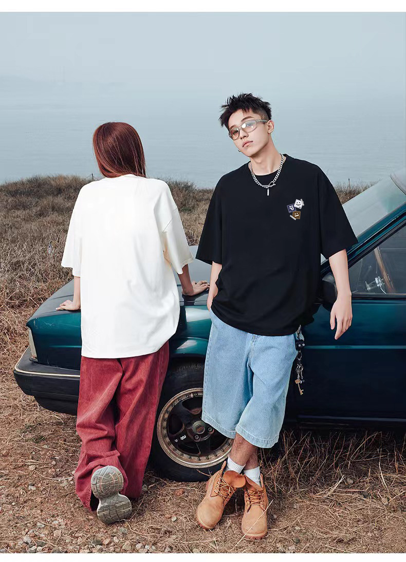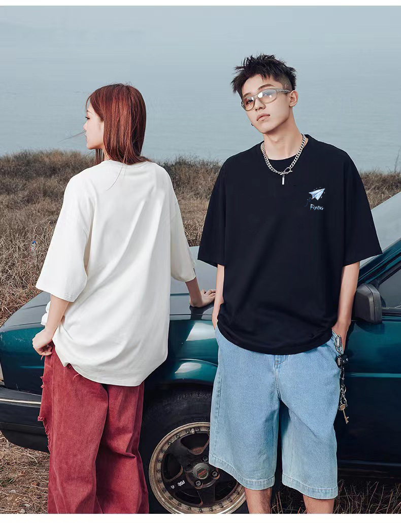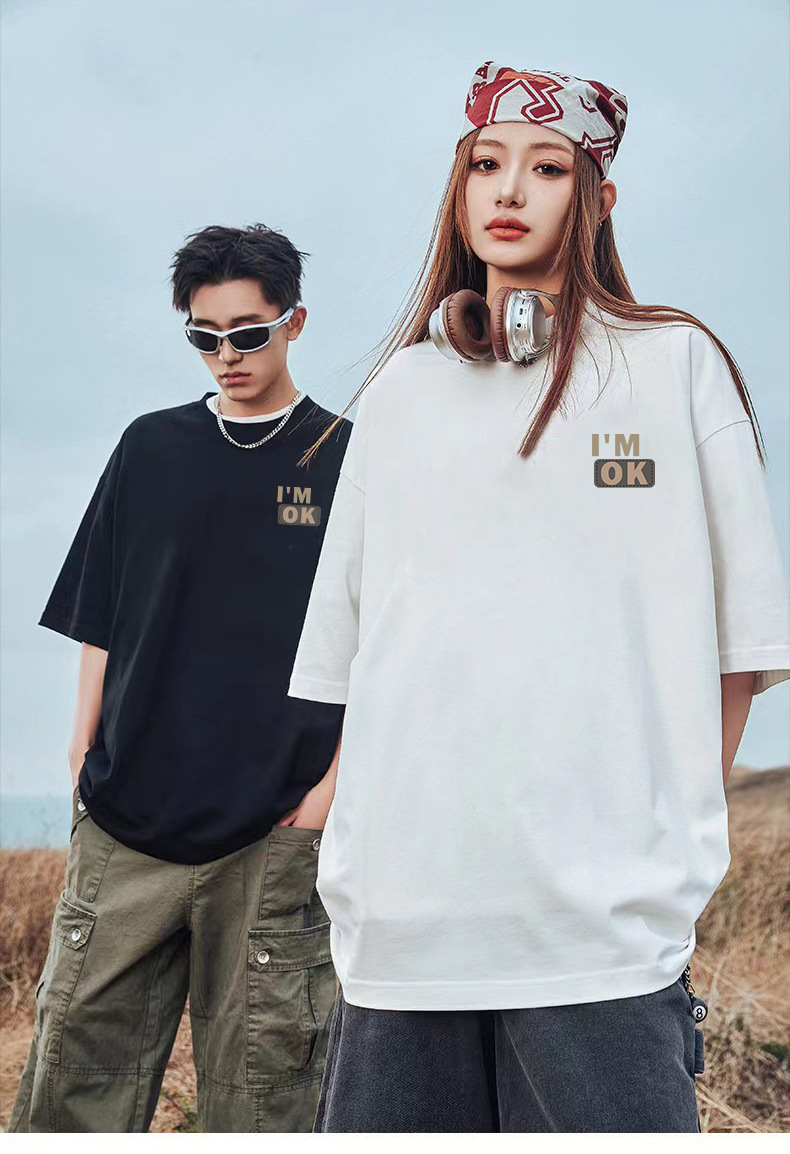Летняя мужская футболка в гонконгском стиле из ледяного шелка с коротким рукавом свободная универсальная мужская и женская круглый вырез принтованная белая
