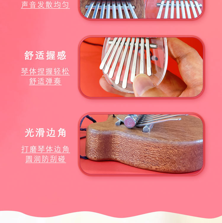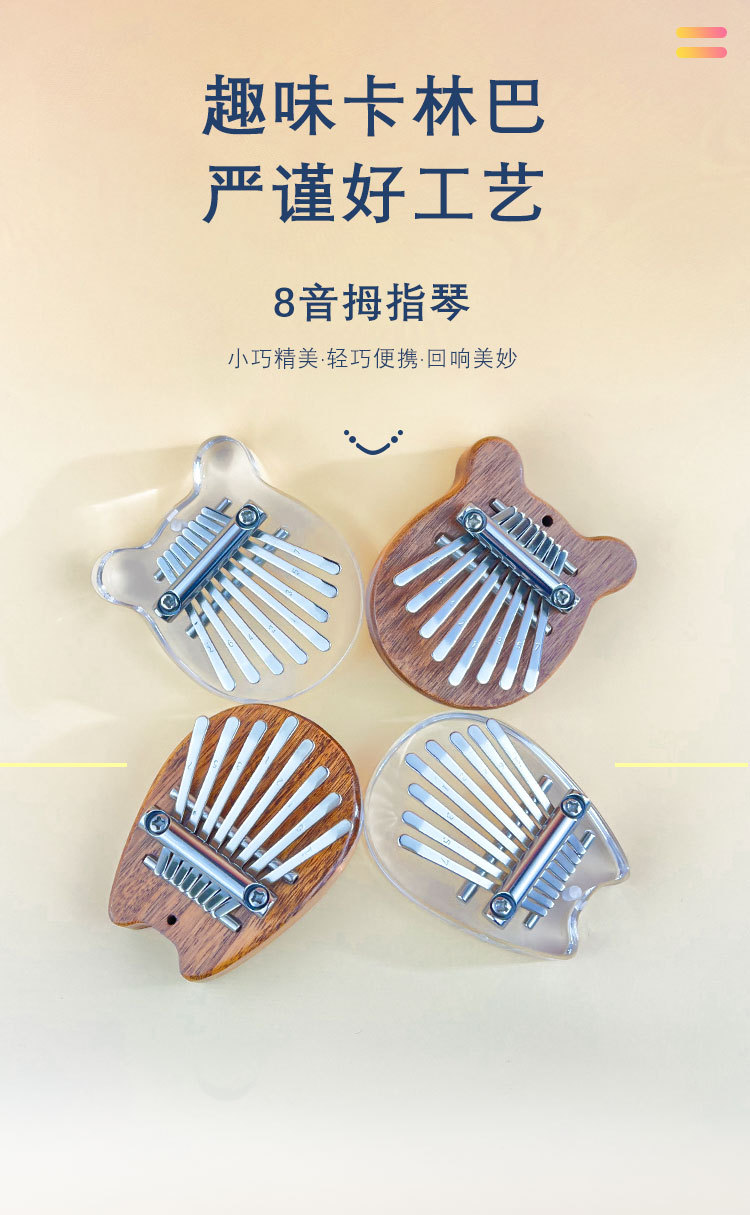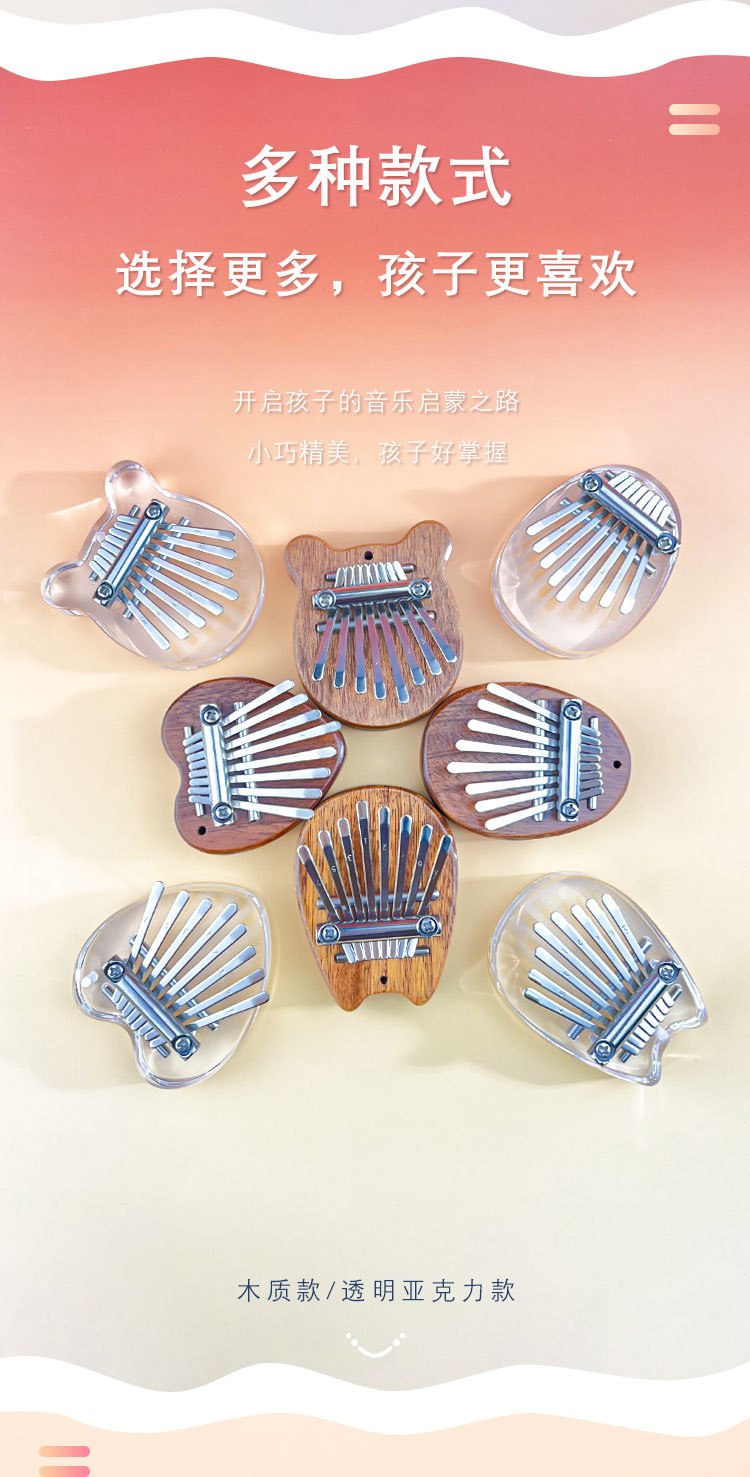 工厂直供实木8音迷你拇指琴八音手指琴水晶卡林巴kalimba乐器批发