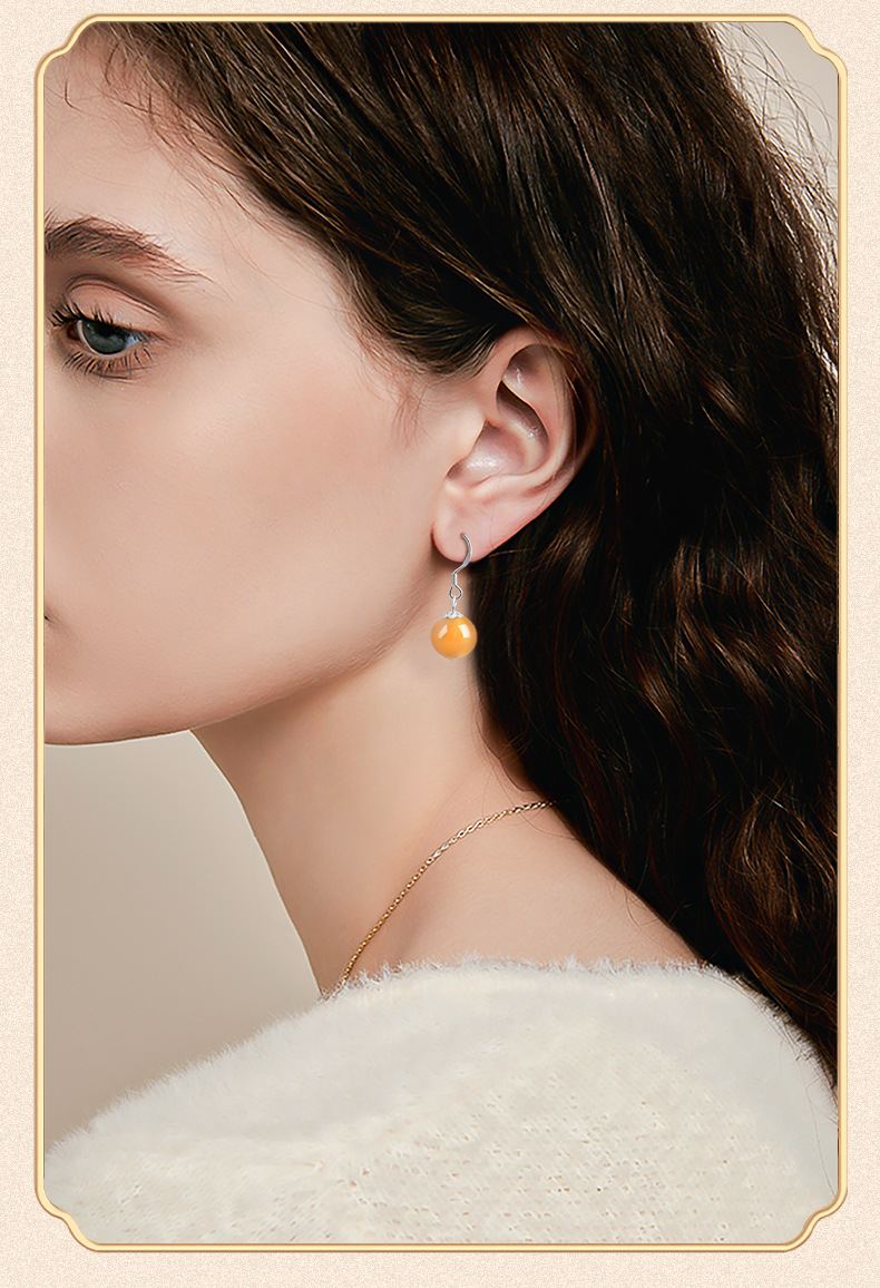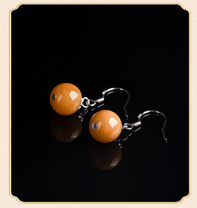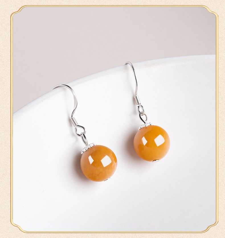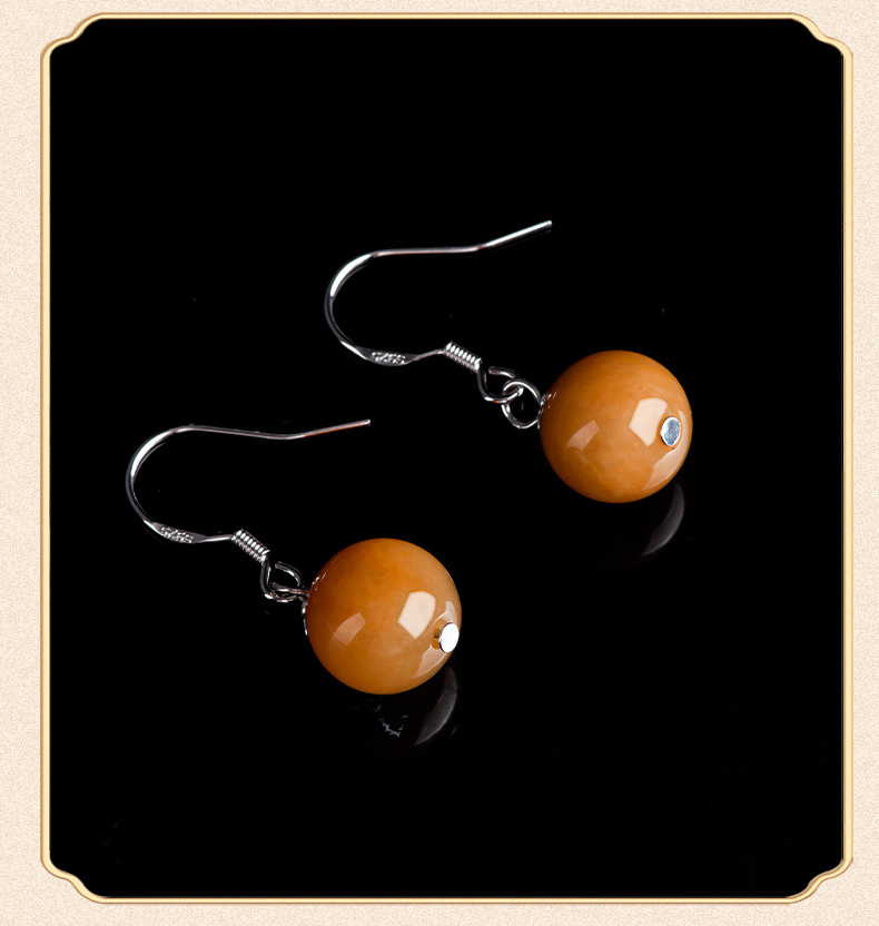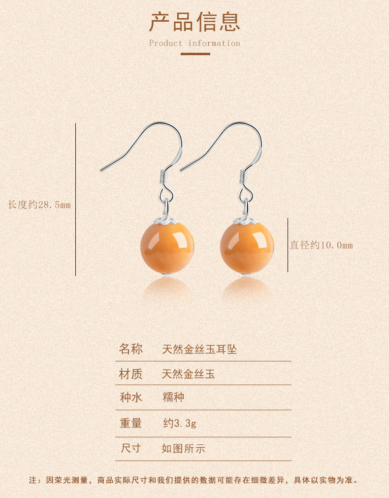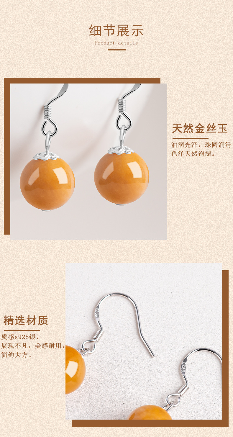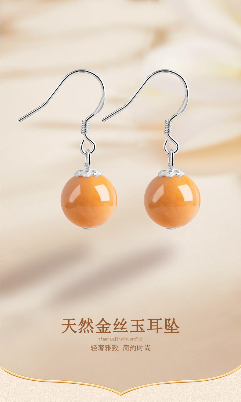 Натуральные серьги из золотого шелка из Синьцзяна, круглые бусины, серебро S925, инкрустированные нефритом, модные серьги для женщин, этнический стиль