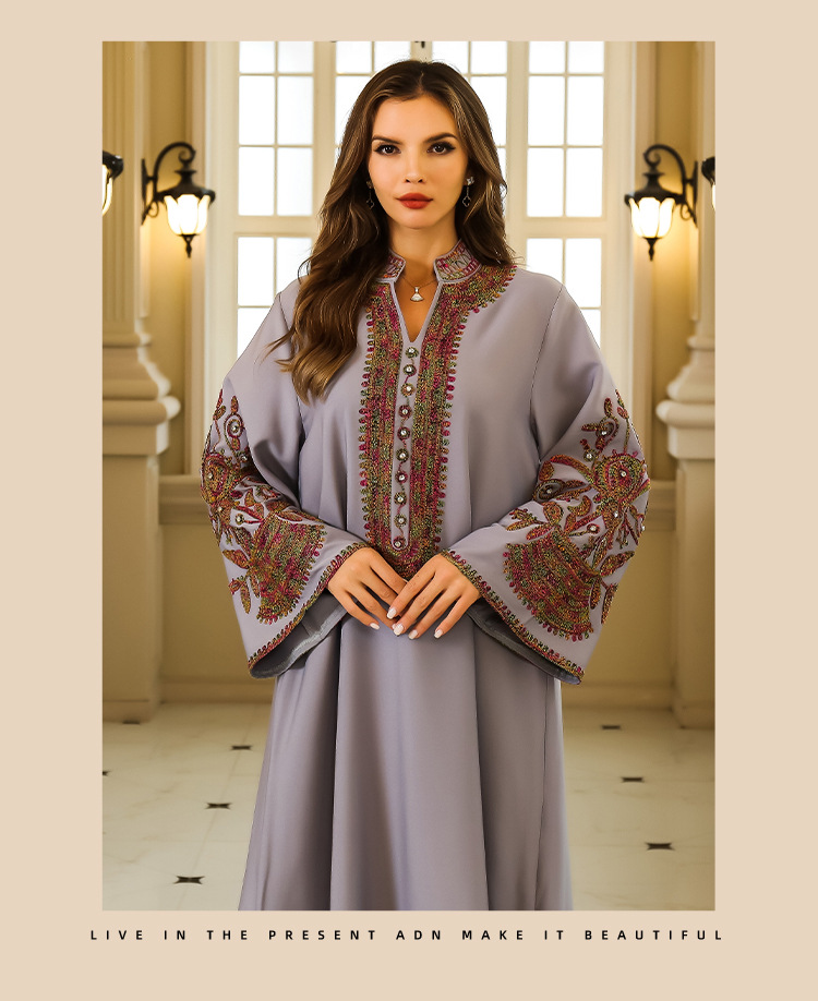 Кросс-бодерная дубайская мусульманская абая, вышитое платье, турецкая одежда Ближнего Востока, экспорт женской одежды