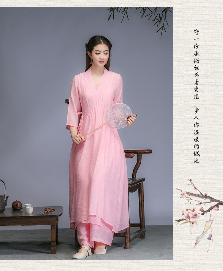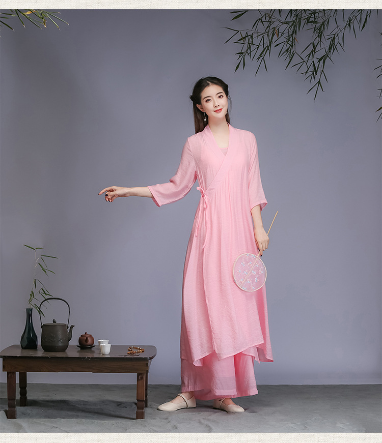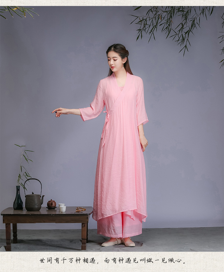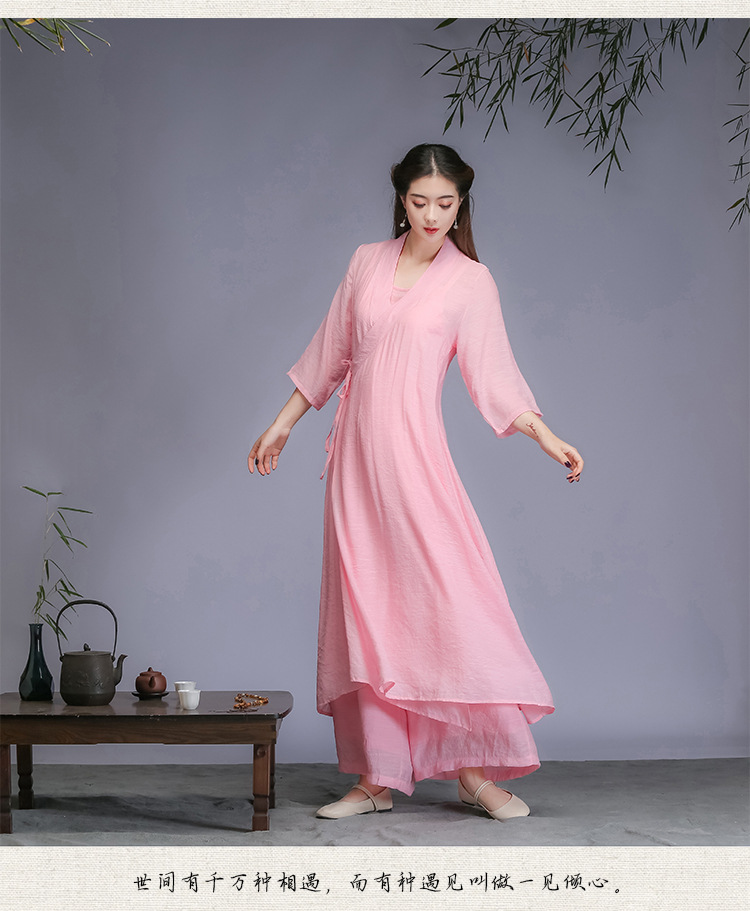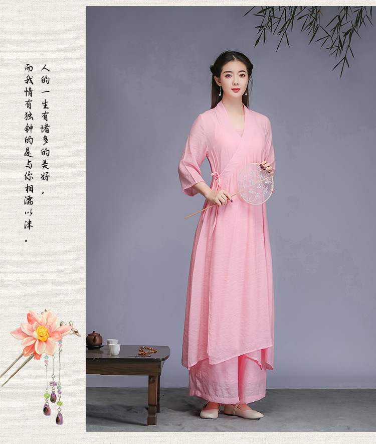 Реальное фото нового художественного китайского стиля ханфу весна-осень 2026 года, вдохновленное дзеном, женская одежда, платье для медитации, трехкомплектное платье