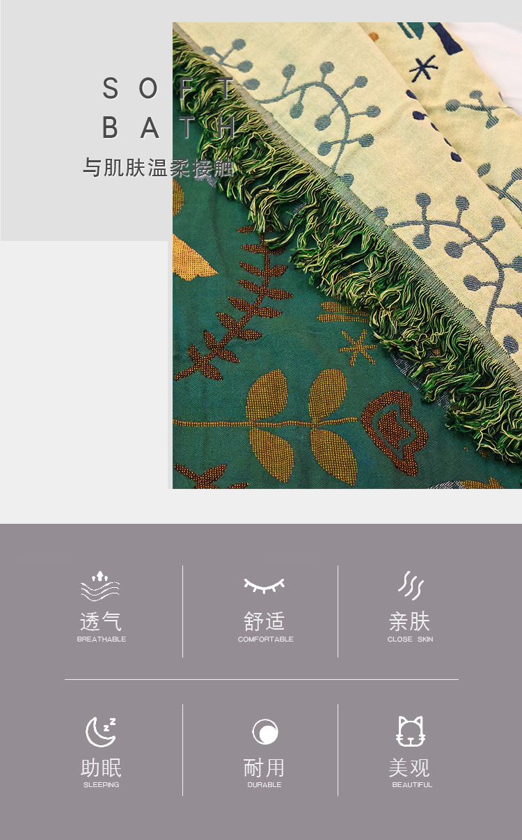 ![]() | Dark green flower and bird tassel towel quilt | 150x200cm | ¥79.0 / ≈ 961 ₽ | 1000 | 6124989982442 | |