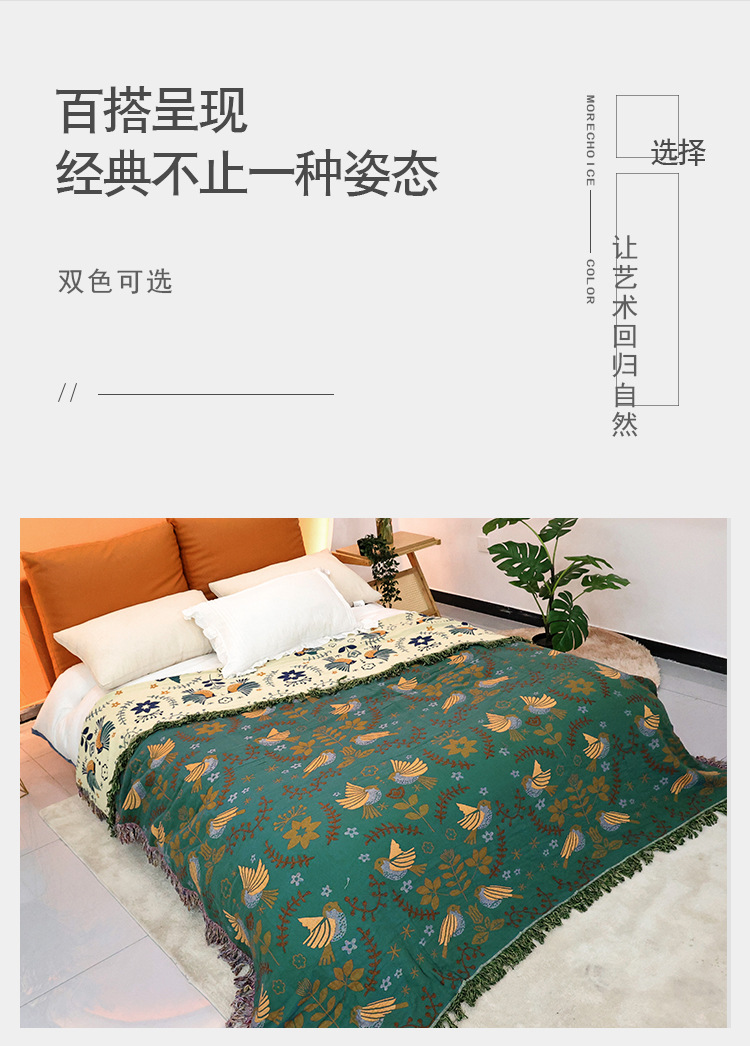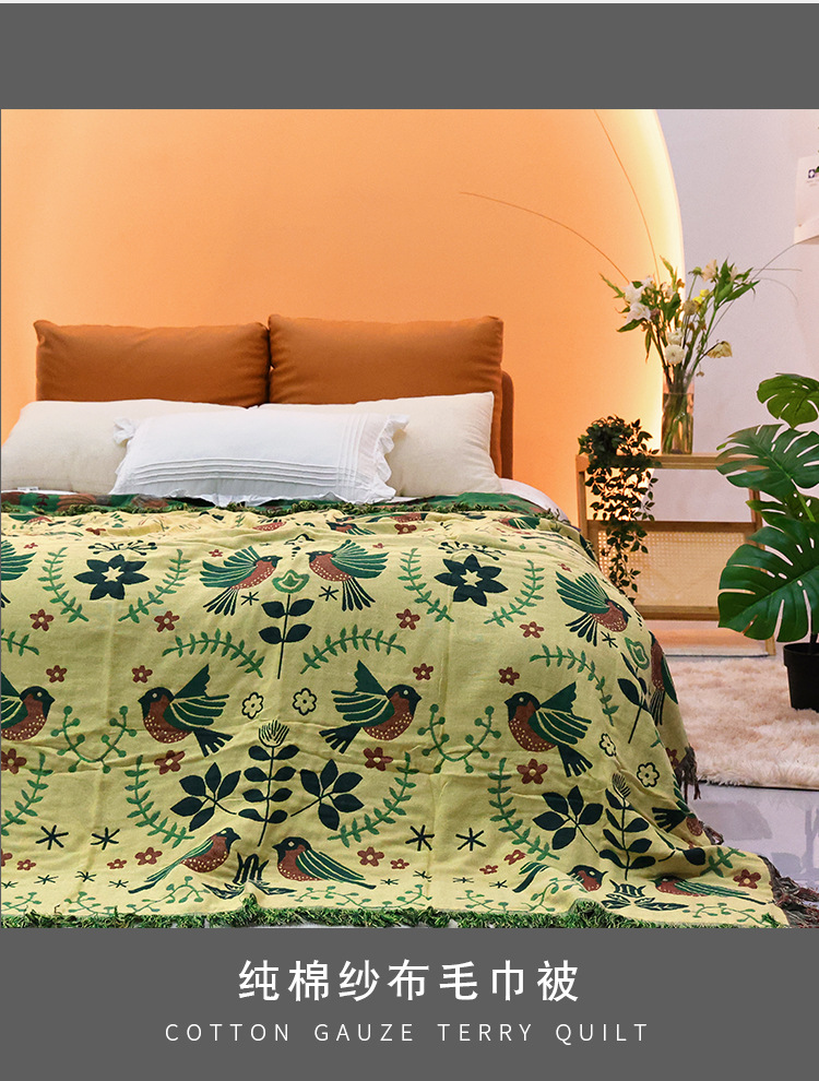 ![]() | Green flower and bird style tassel towel quilt [beige on the back] | 150x200cm | ¥79.0 / ≈ 961 ₽ | 636 | 6124989982441 | |
