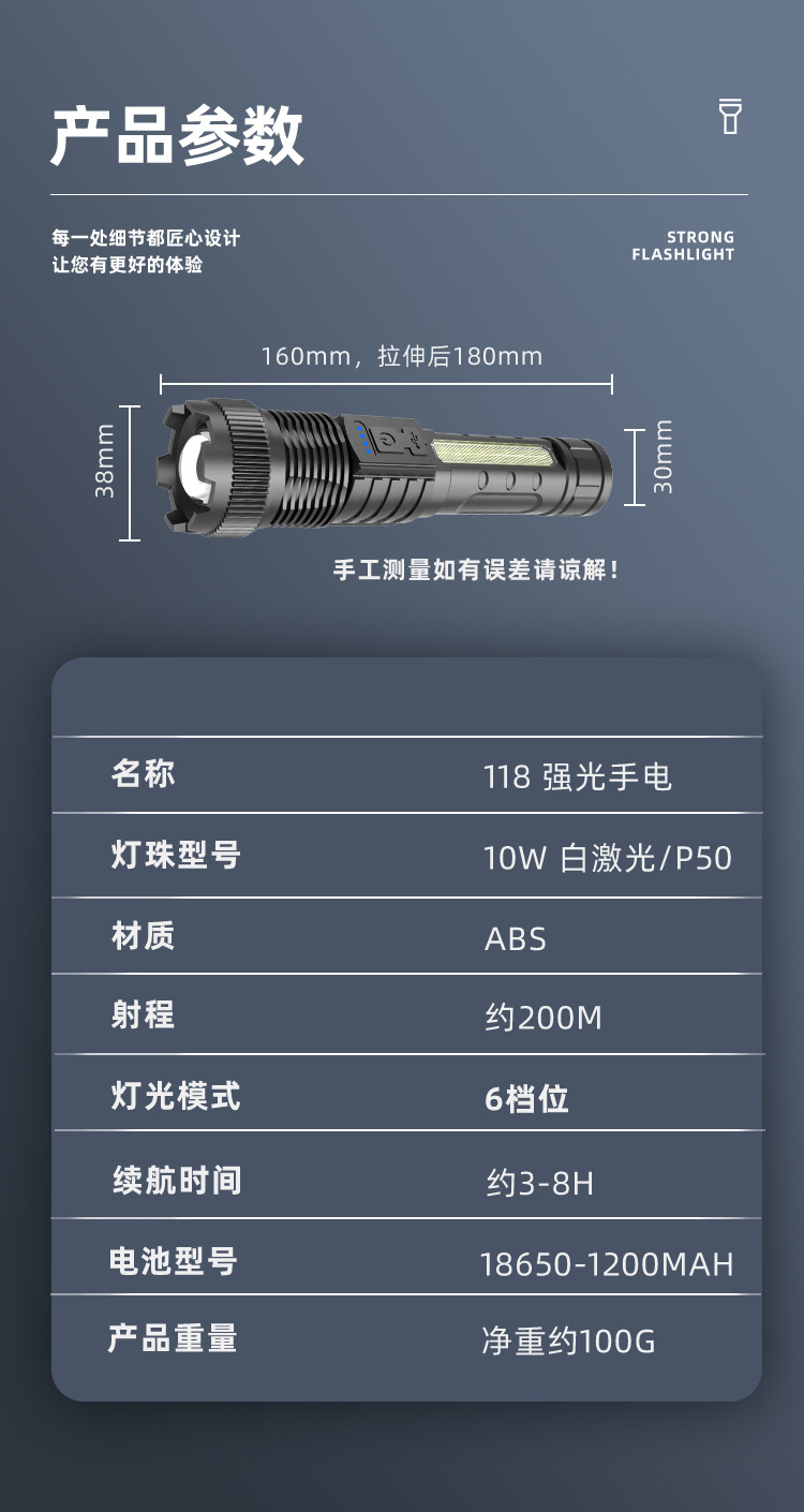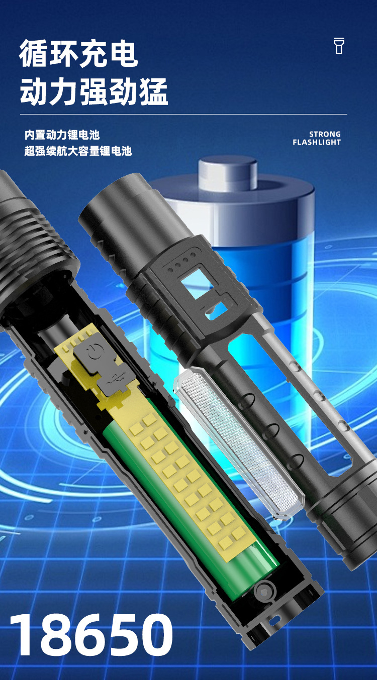 Кросс-бордерный новый P50, телескопический, мощный фонарик, красный и синий свет