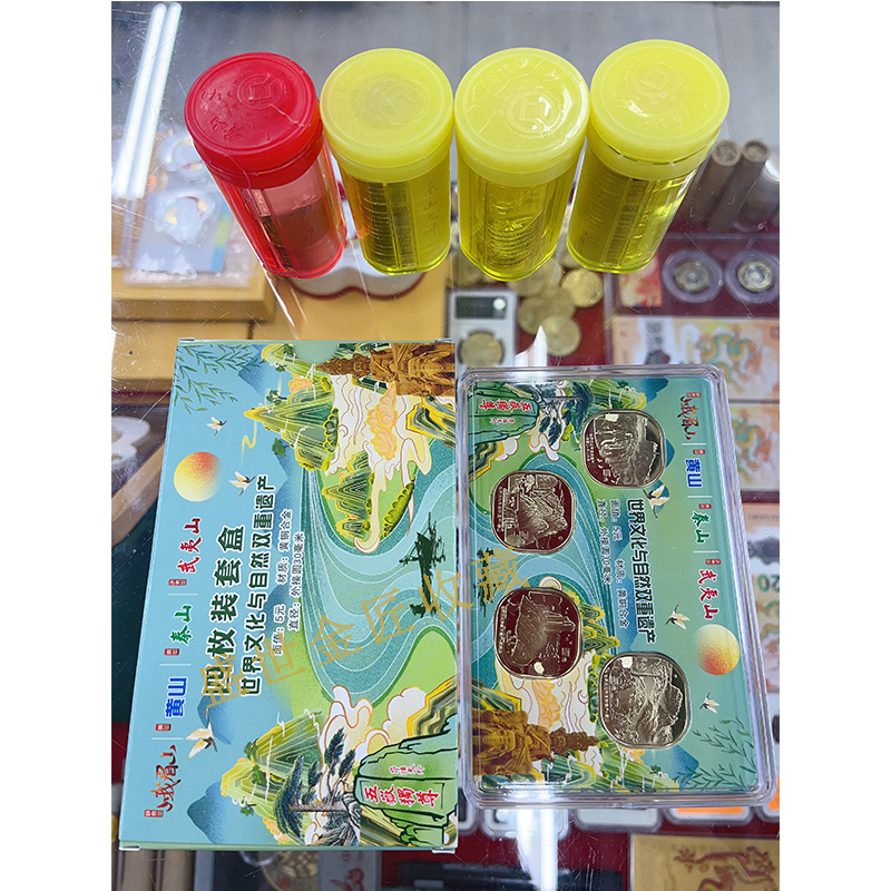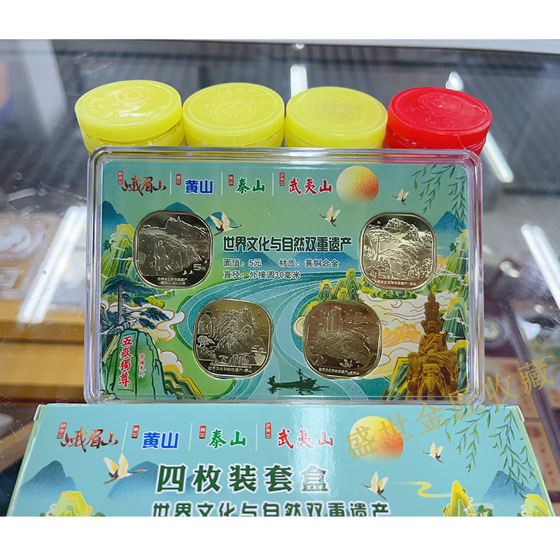 Четыре памятные монеты Тайшань, Уйишань, Хуаншань, Эмейшань, версия в коробке, новый комплект памятных монет с упаковкой
