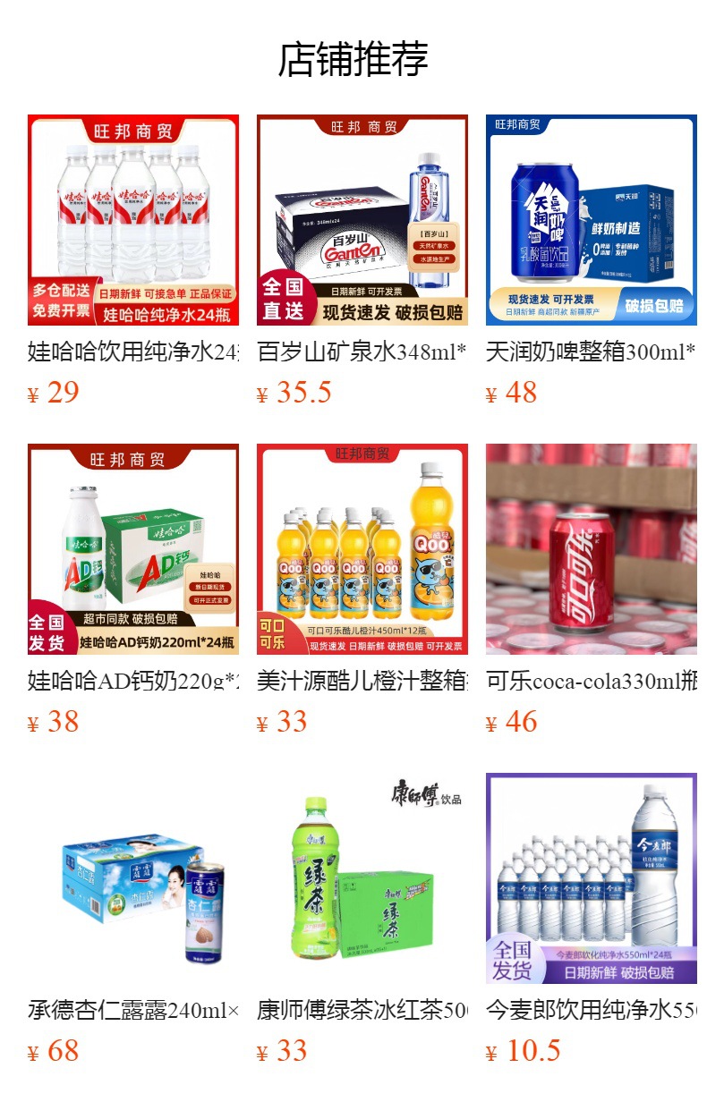 陕西旺邦商贸有限公司,���立于2009年,对酒水饮品行业有十多年的研究,我公司主营的产品康师傅系列、农夫山泉系列、可口可乐系列等,可咨询旺旺,24小时在线。