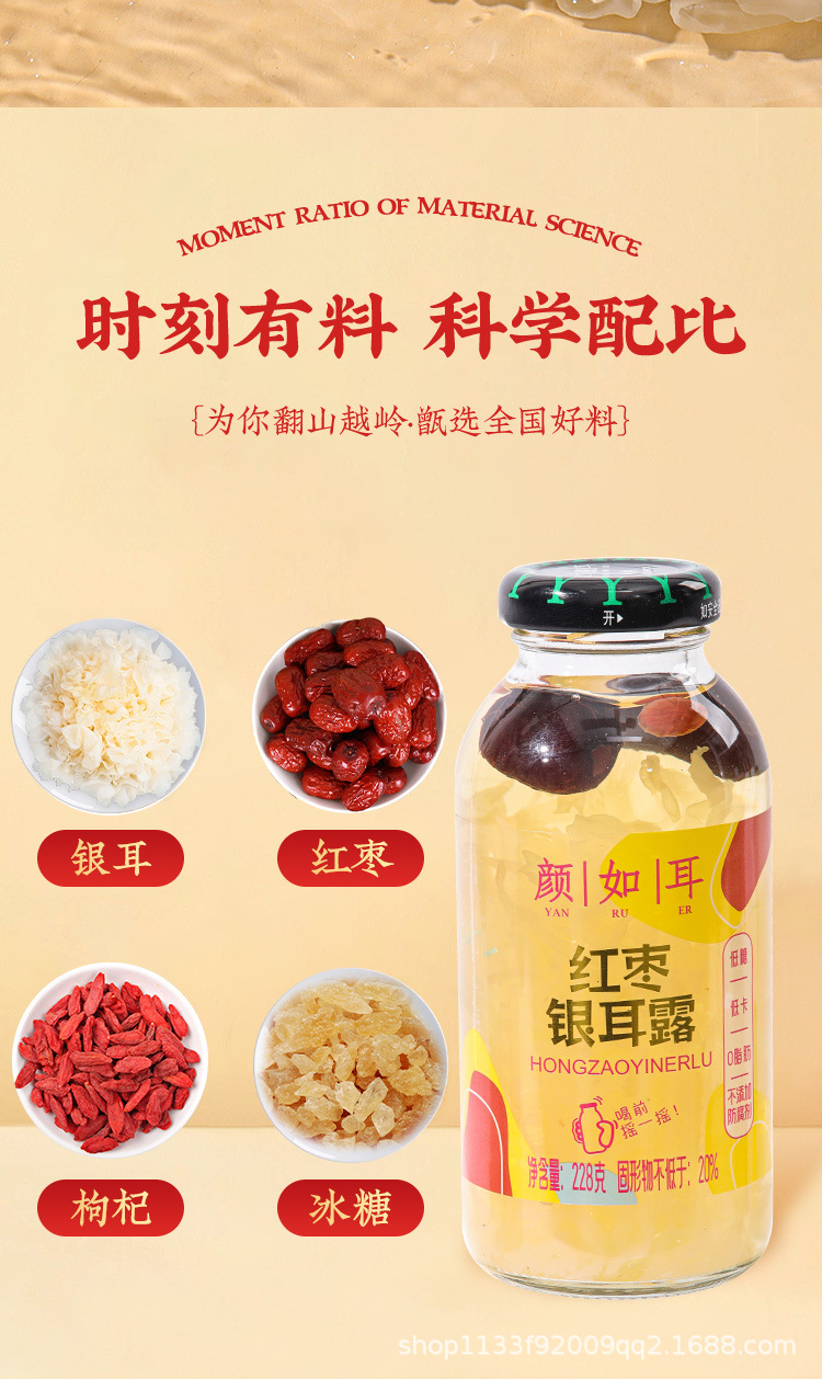 Сырьё и ингредиенты Drinking water, silver ears, ice sugar, red dates, wolfberry