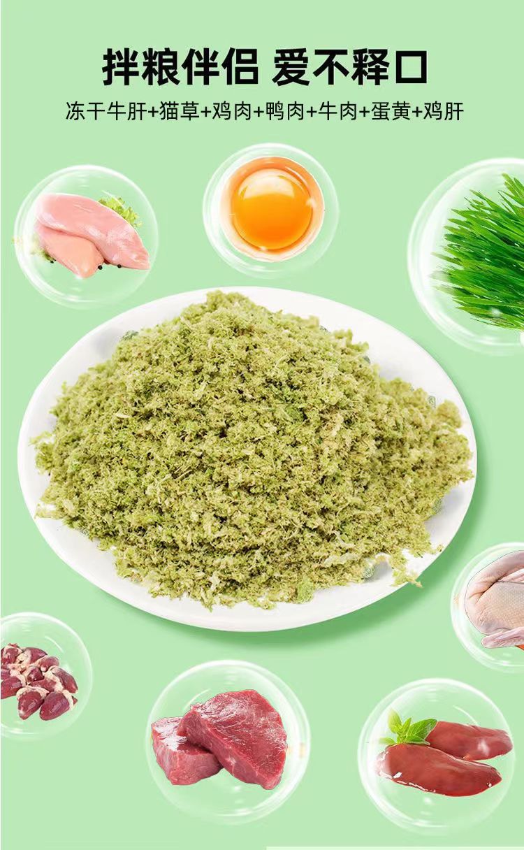 📦 | Chicken velvet + cat grass velvet + beef liver powder + cod fish powder + mussel powder + egg yolk powder | 60g | ¥8.0 / ≈ 97 ₽ | 0 | 5472234377034 |