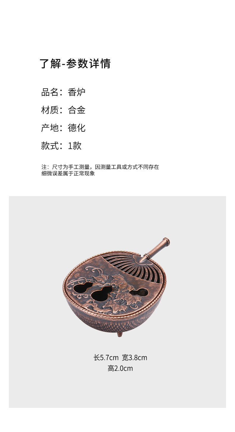 ![]() | Gourd fan incense burner-red copper | ¥1.6 / ≈ 19 ₽ | 887868 | 5471524228090 | |