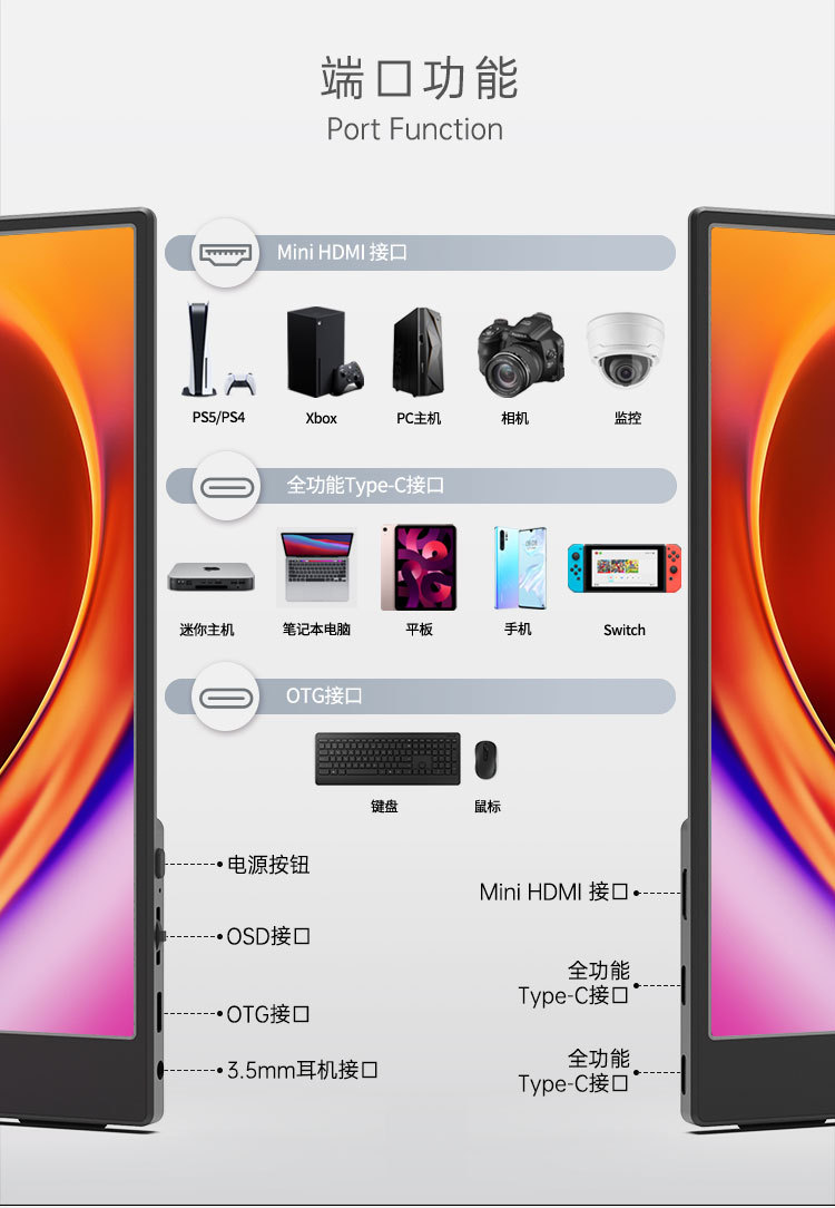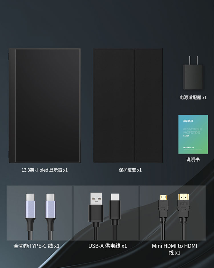 Портативный дисплей Intehill 13.3 дюйма, OLED 1080P, расширение для Switch, PS5, мобильного телефона
