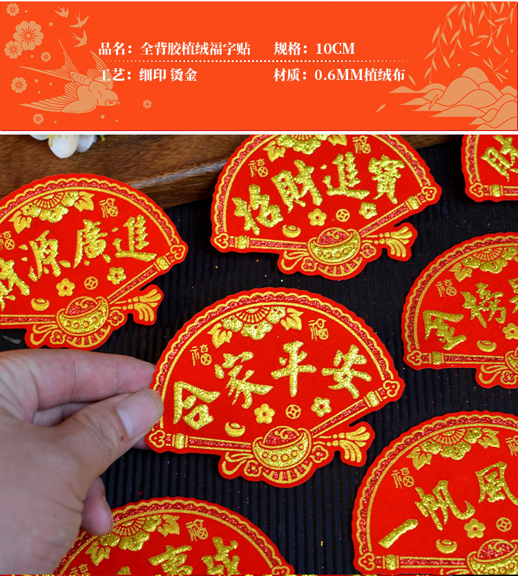 Мини фланелевые наклейки в форме веера с символом удачи