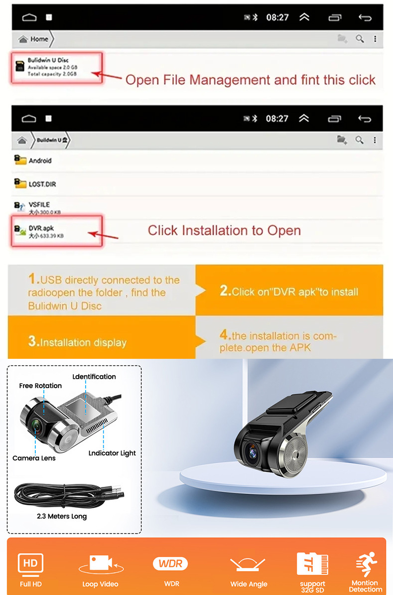 1、第一次使用时,请用本机对TF卡格式化,然后再开始使用,以防止TF存储卡内因为有异常文件或病毒造成机器在录影时死机和花屏等问题出现。