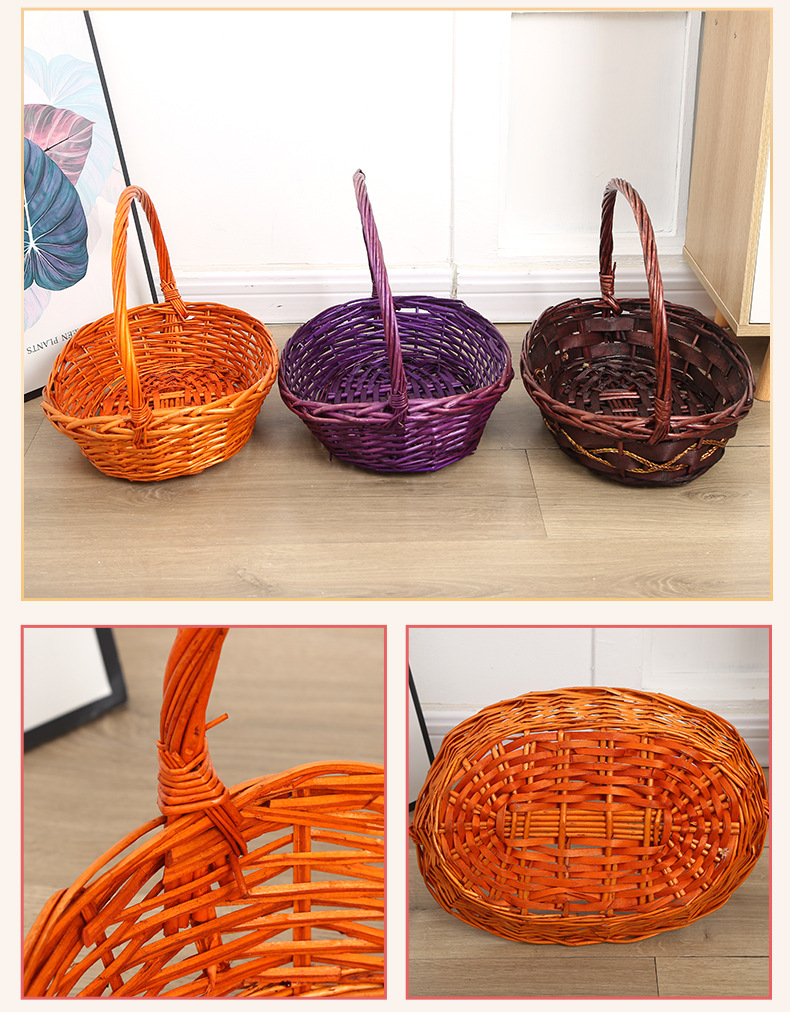 Плетеная корзина для фруктов, подарочная сумка, корзина для сбора, корзина для хранения, супермаркет, корзина для яиц, деревенский стиль