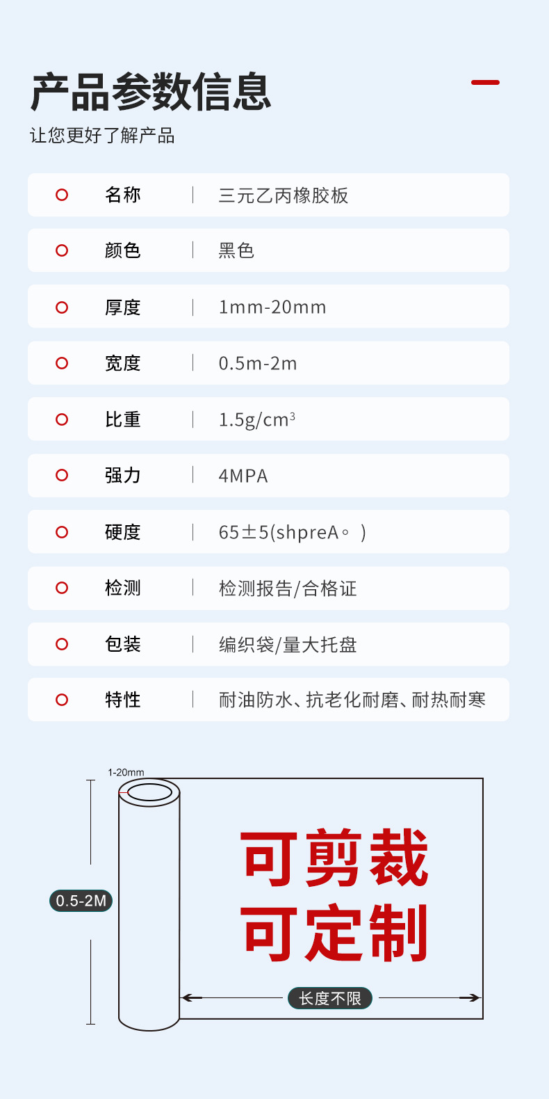Название продукта High temperature resistant ethylene propylene rubber plate
