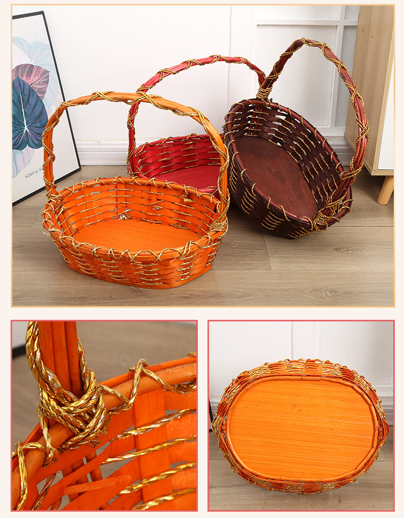 Плетеная корзина для фруктов, подарочная корзина супермаркета, ротанговая корзина для хранения, плетеные изделия, сумка для сбора, корзина для фруктов и овощей