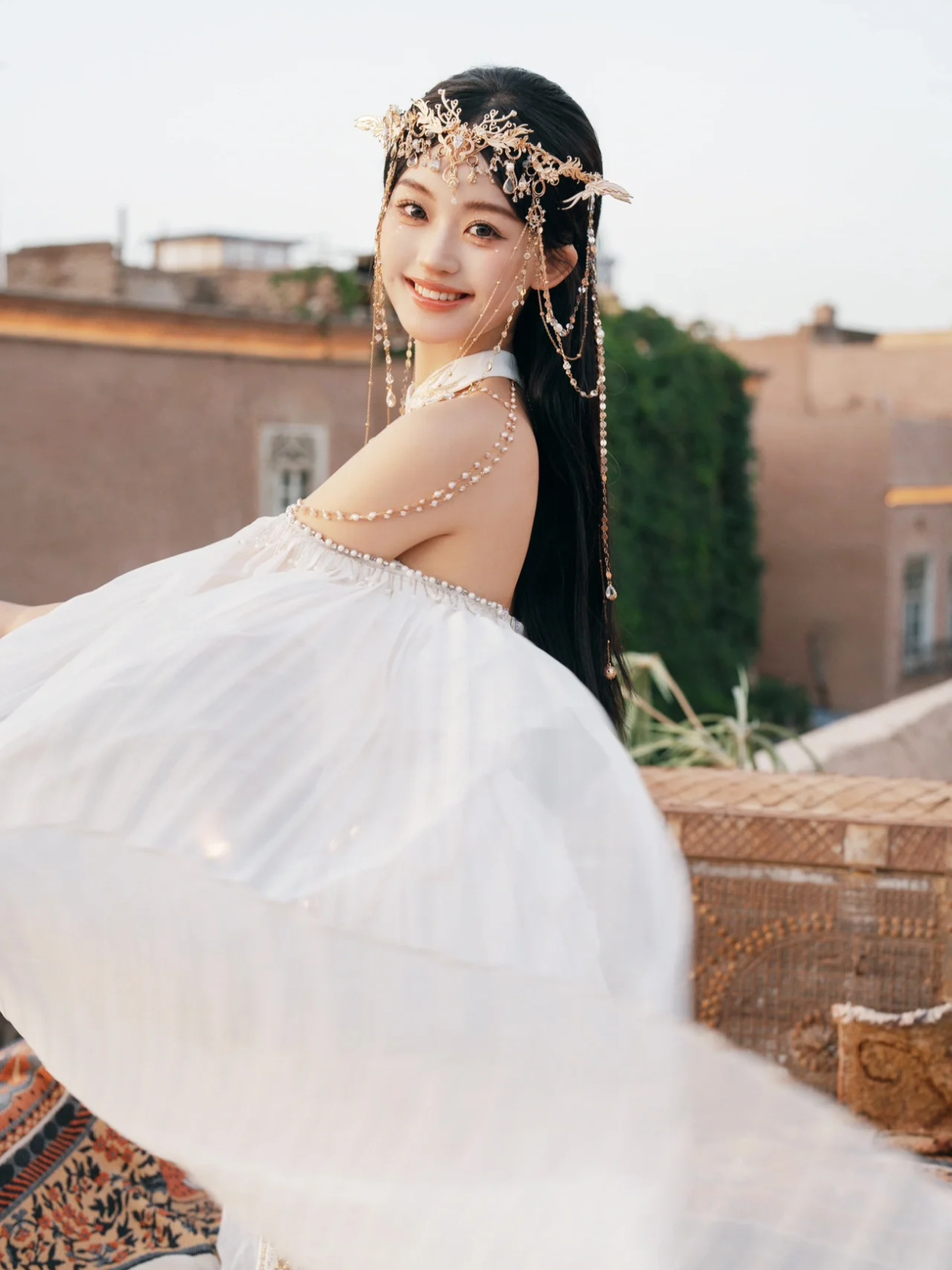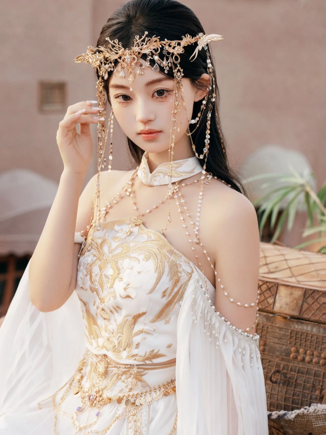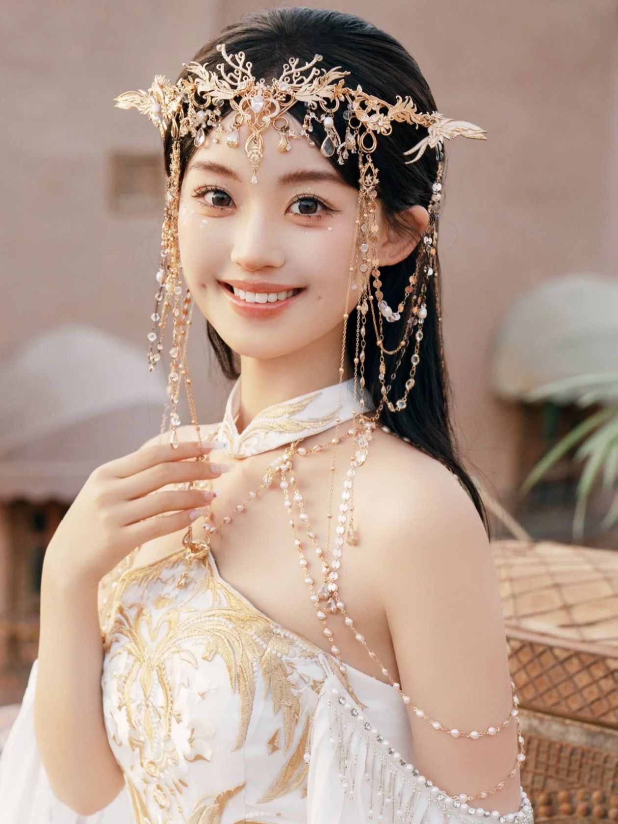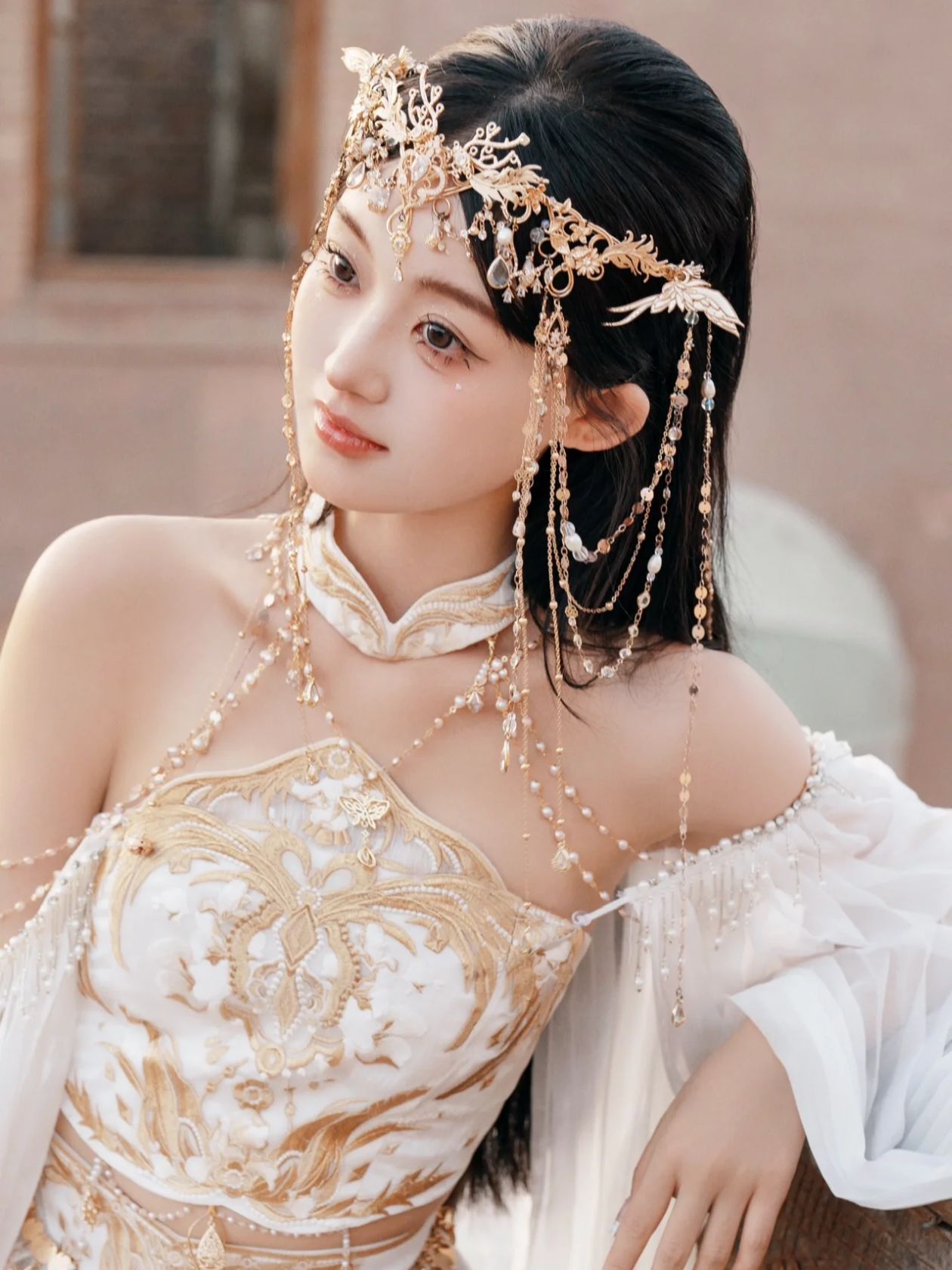Кашгар путешествия головной убор инопланетный стиль антикварный стиль кисть цветок головной убор подвеска для бровей украшение для волос портрет танцовщицы западного региона