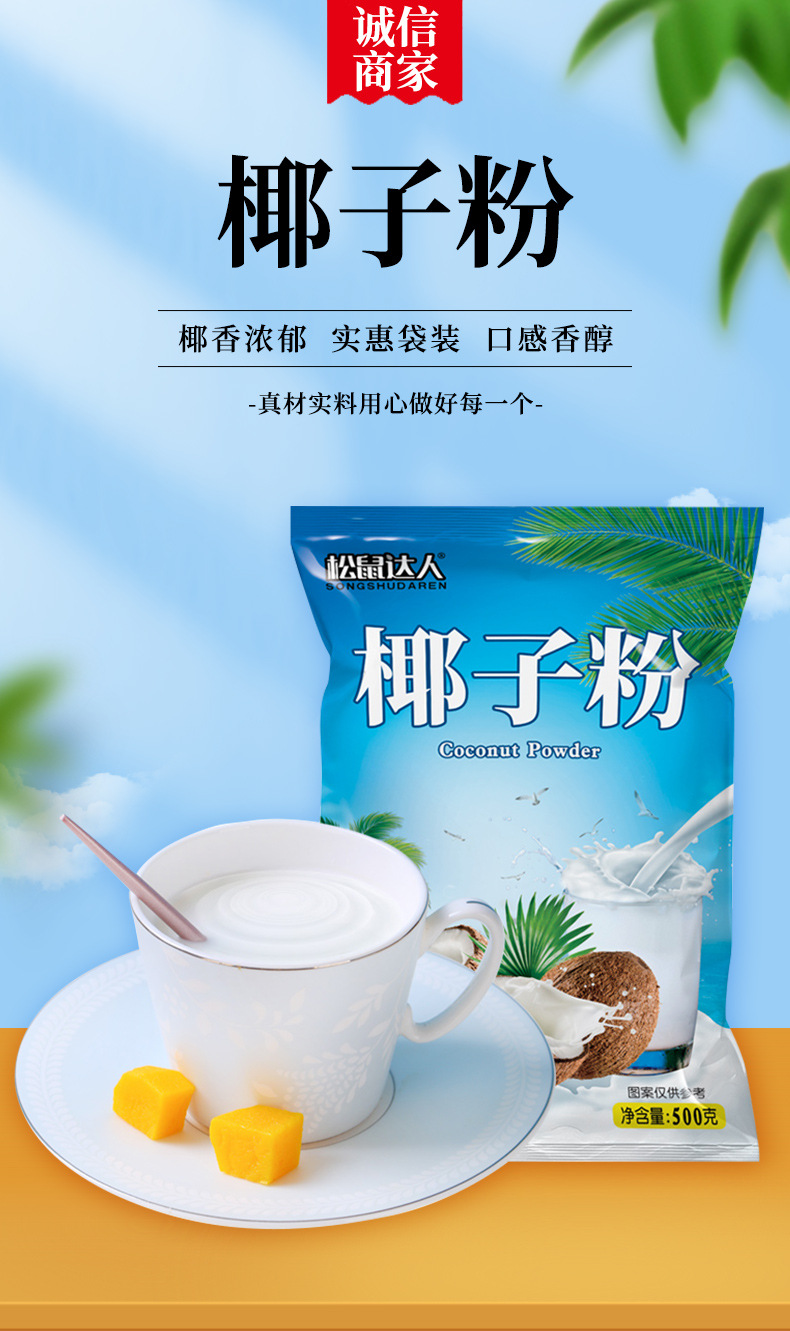 Аутентичный молочный вкус кокосового порошка Хайнань Порошок кокосового сока Мгновенный коммерческий вкус Твердый напиток Сырье для магазинов молочного чая Оптовая продажа