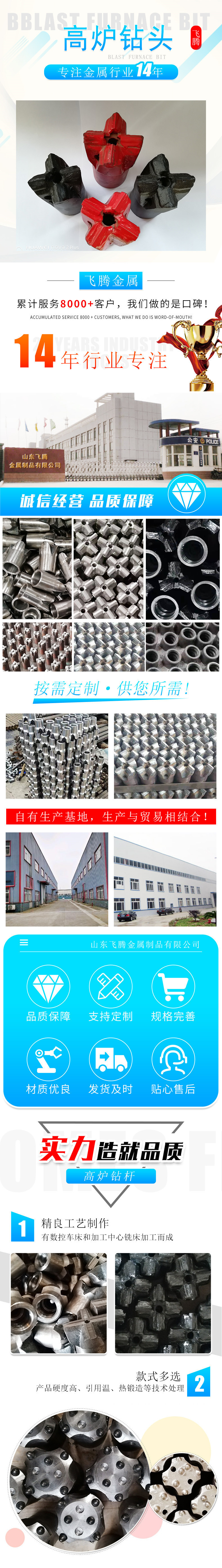 Поставка сверл от Шаньдун Фэйтэн, однослойное сверло с тремя крыльями для открывания высоких печей, ведение бизнеса по всей стране