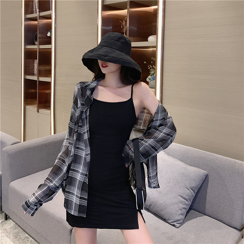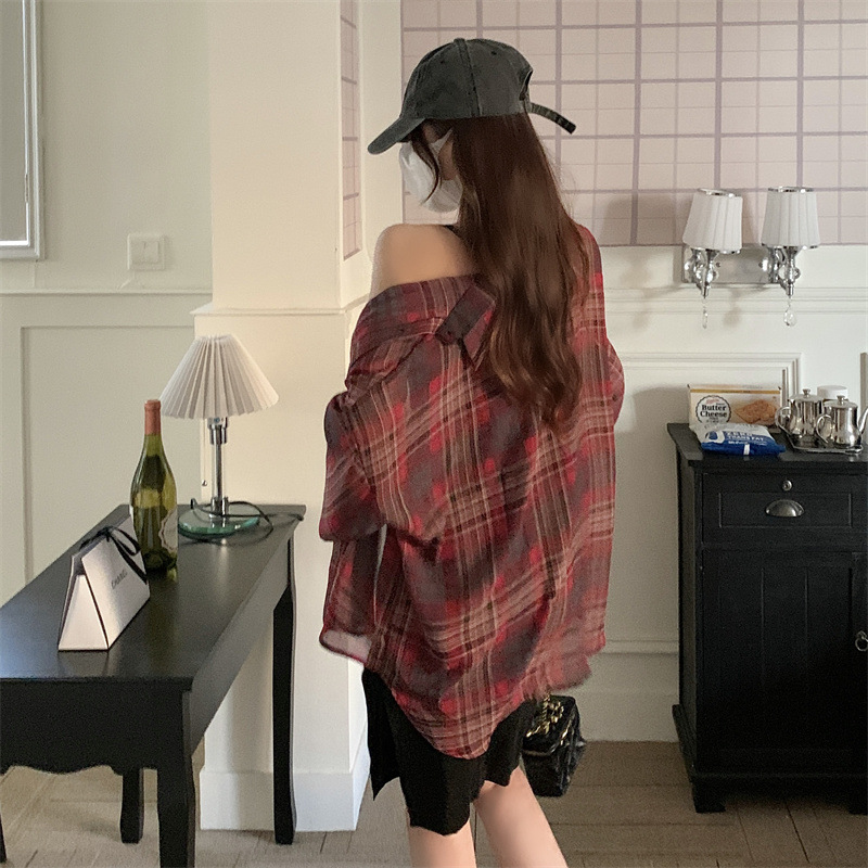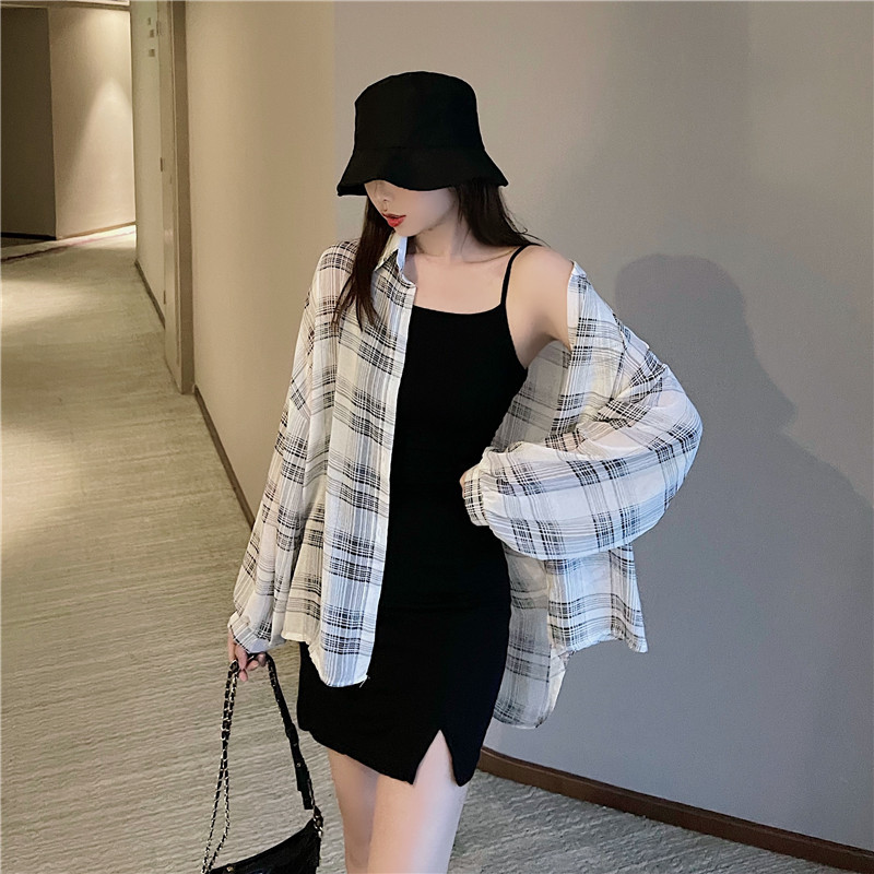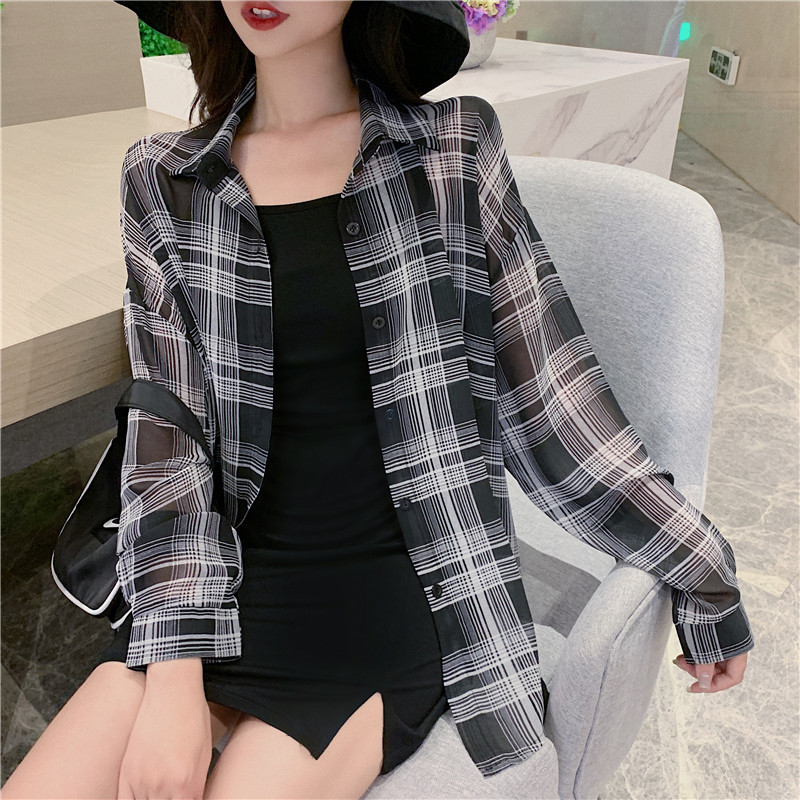 Тонкий элегантный кардиган в клетку с длинными рукавами, защитная рубашка для женщин на лето, свободная, легкая, для кондиционированного воздуха