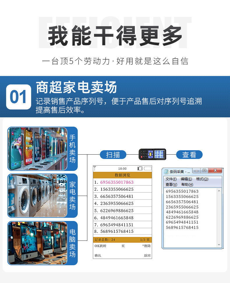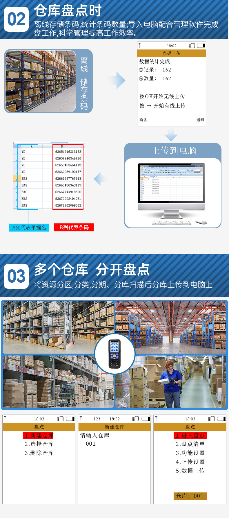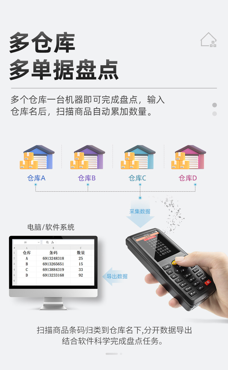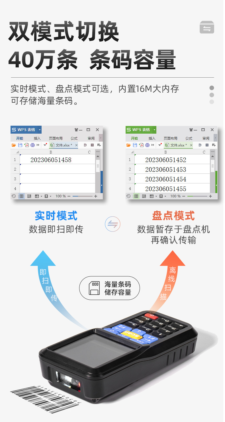 Инвентаризационная машина, беспроводной ручной штрих-код, сборщик данных для экспресс-сканирования, ввод и вывод данных