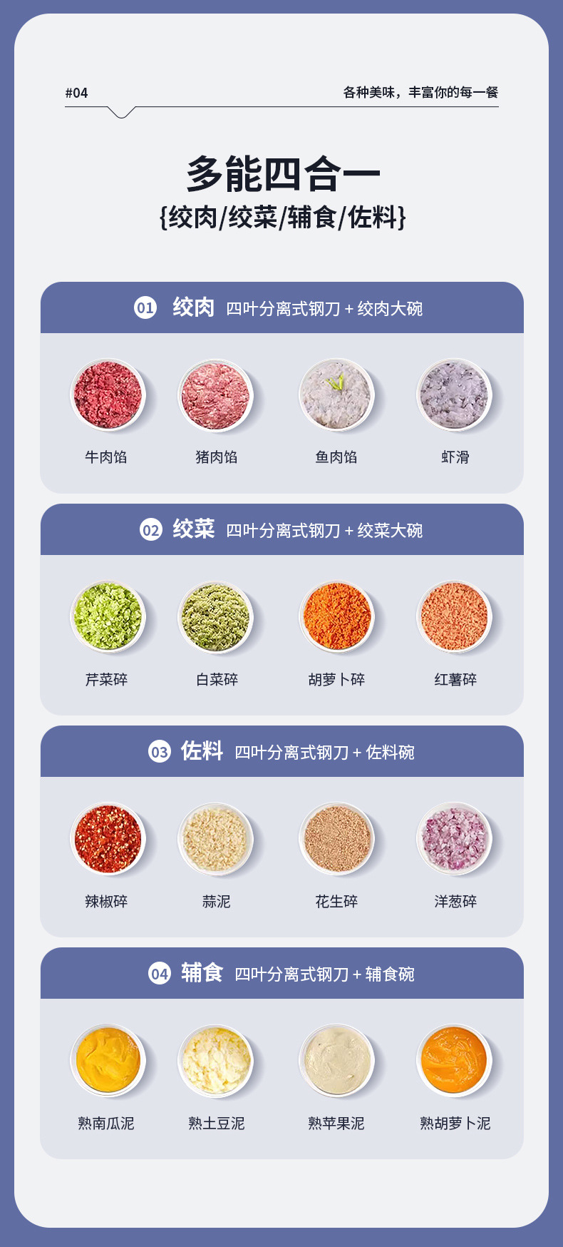 Функция baby food supplement, Charging portable, Wireless operation, Multi-bowl easy storage