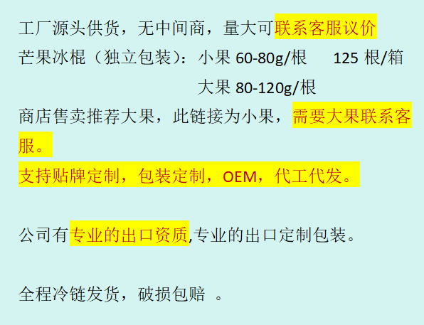 Тайское мороженое с манго без добавок, целый манговый эскимо, эксклюзив для розничной торговли