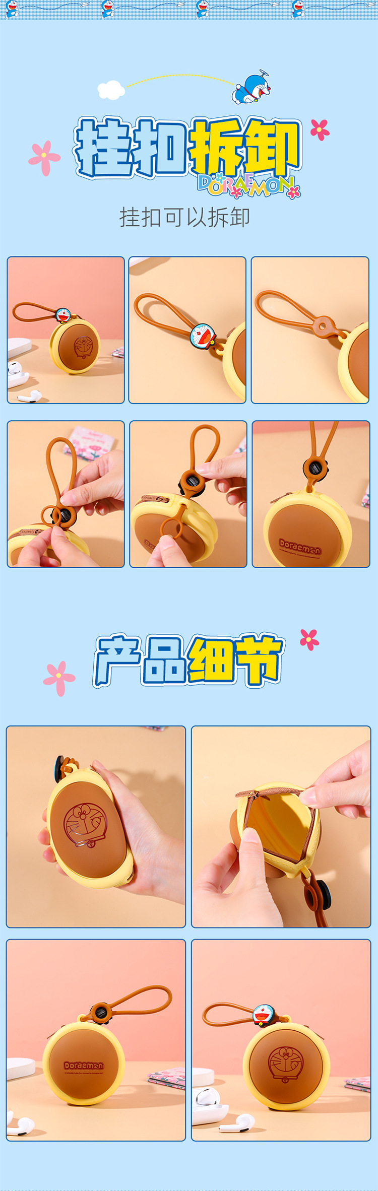 Оригинальная авторизованная сумка-подвеска Дораэмон, силиконовая, для наушников, креативная монетница