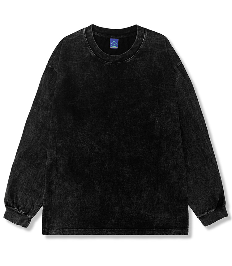 260г кросс-бодер осень и зима однотонная модная марка стирка нить бим высокие улицы свободная старая хлопковая длинная футболка для мужчин и женщин