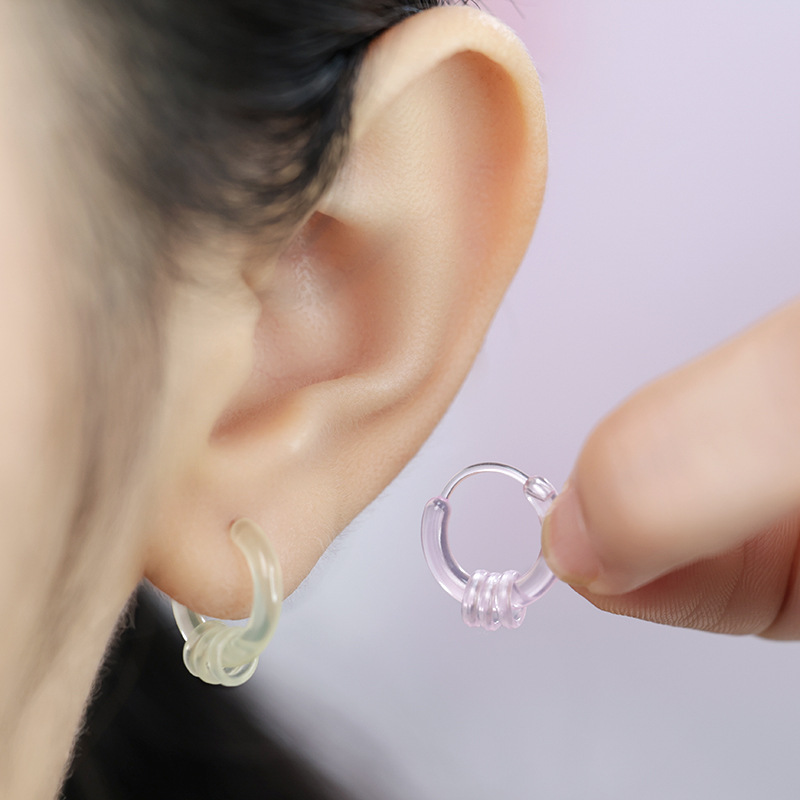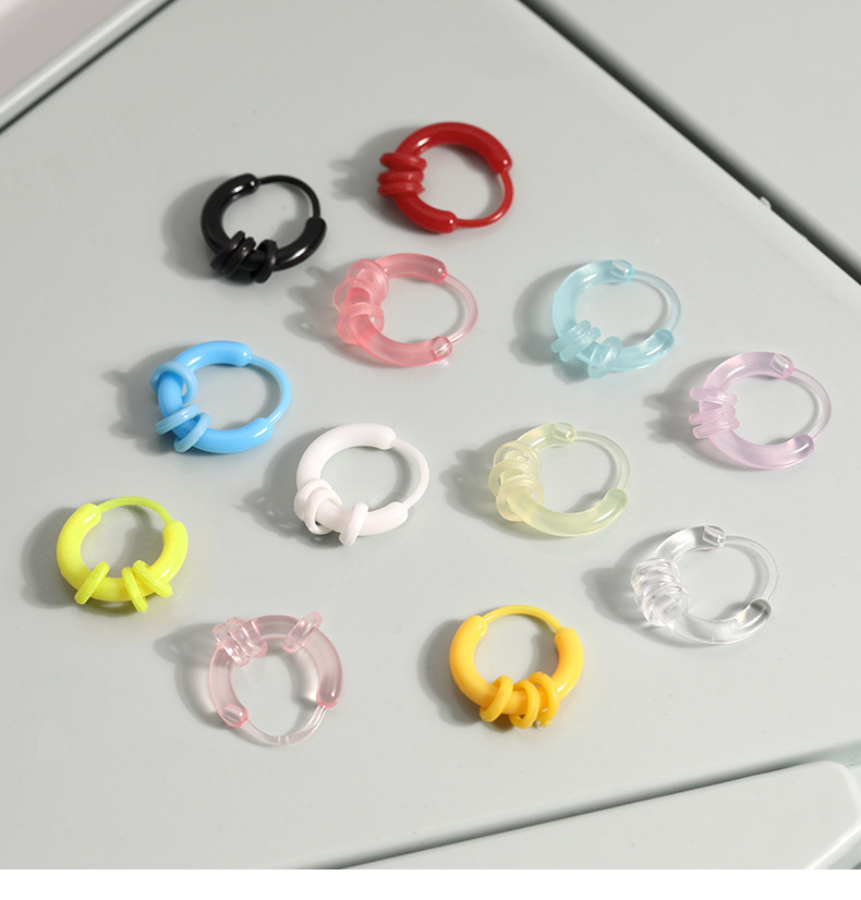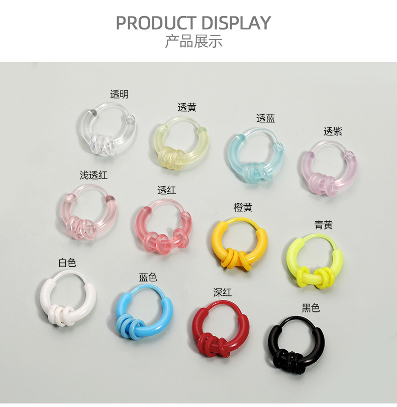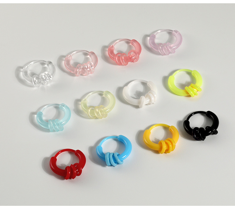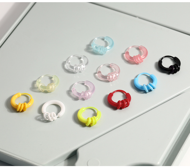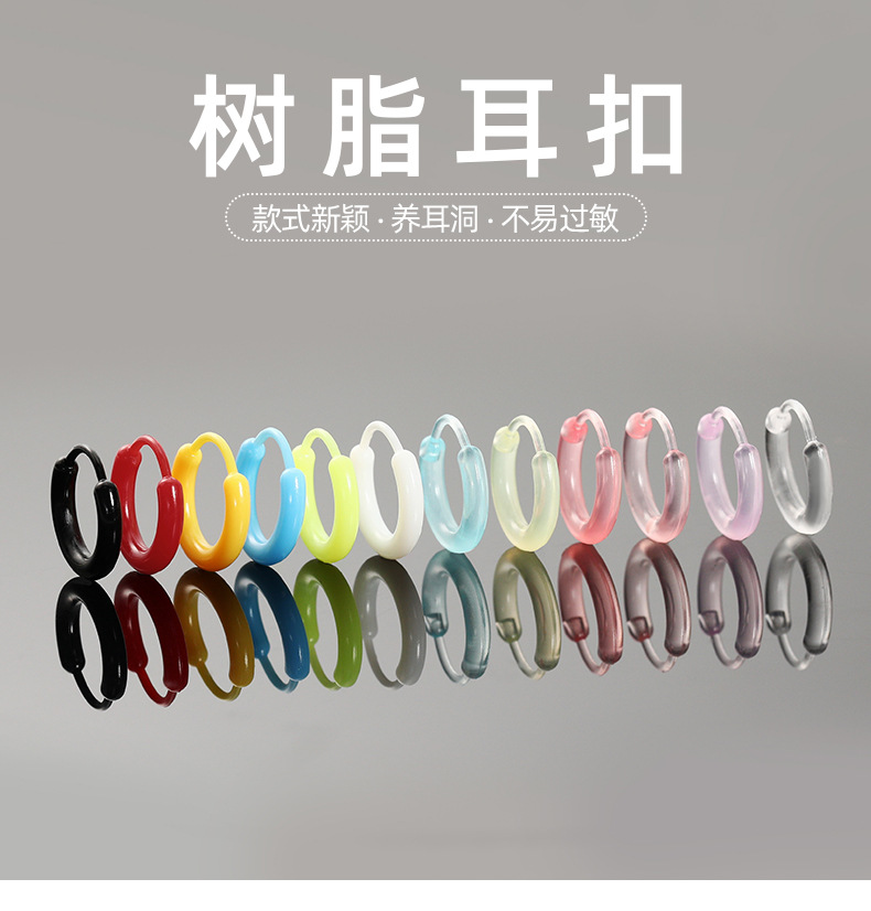 树脂养耳洞耳钉女士耳环新款潮彩色圈圈耳扣韩版学生百搭耳圈耳饰