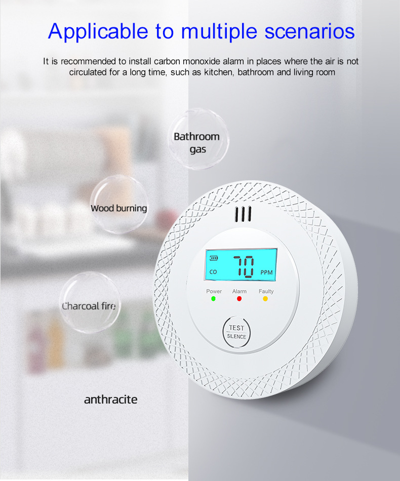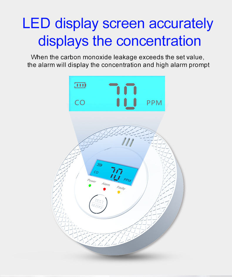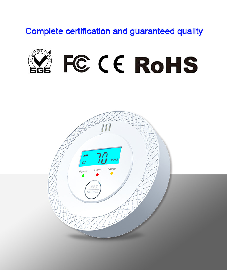 Кросс-бодерный хит продаж европейский стандарт настенный независимый детектор угарного газа мини круглый бытовой сигнализатор угарного газа